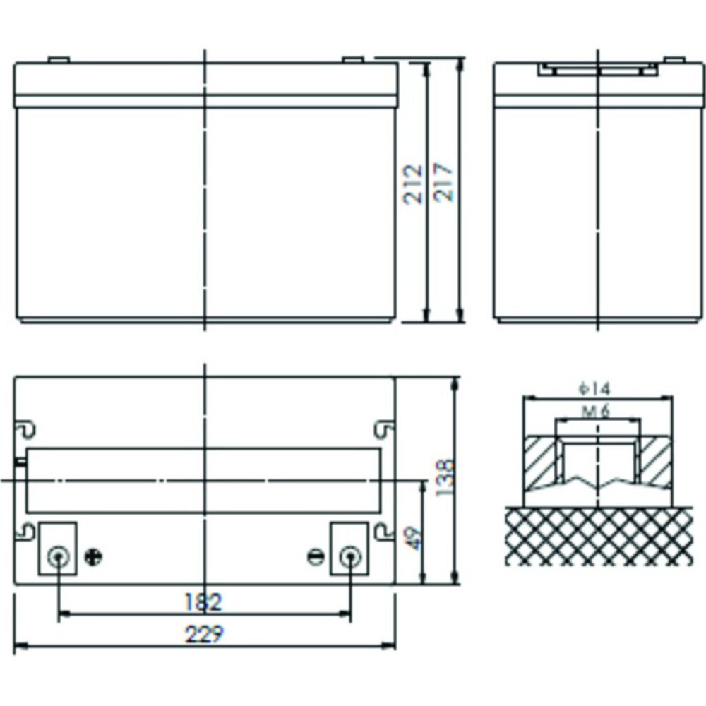 - Клеммы: M1 ( 14 мм, болт 6 мм под ключ 10 мм)