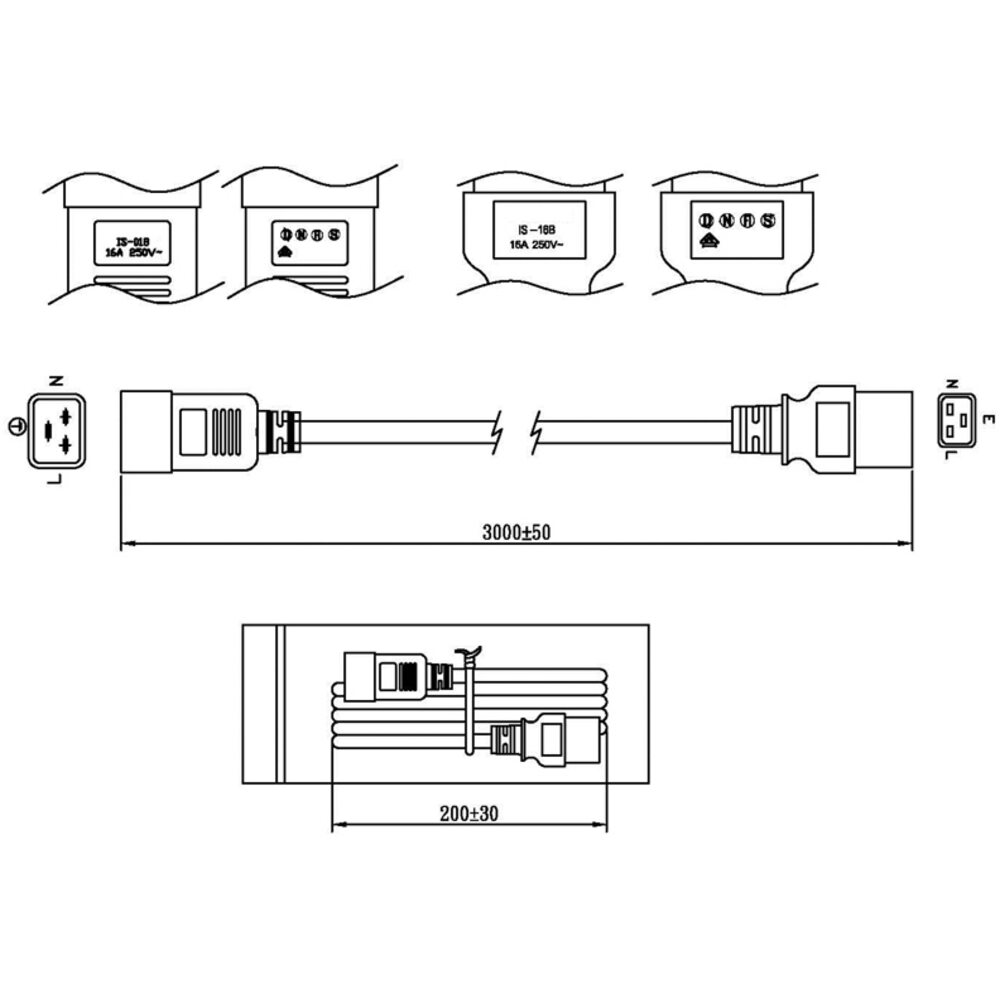 Hyperline PWC-IEC19-IEC20-5.0-BK - кабель питания IEC 320 C19 - IEC 320 C20 (3x1.5), прямая вилка, 16A, 5м, цвет черный.
