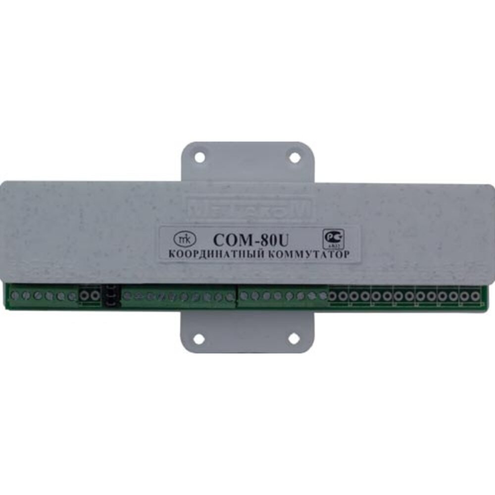 Коммутатор координатный COM-80U предназначен для коммутации абонентских линий в домофонных системах на базе вызывных панелей МЕТАКОМ и рассчитан на подключение до 80-ти абонентов.