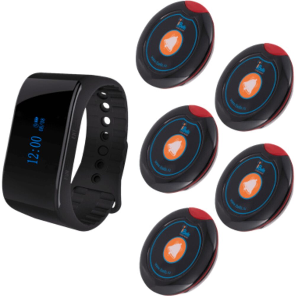 Комплект системы вызова персонала включает в себя: влагозащищённый наручный пейджер iBells 69 и 5 кнопок вызова iBells 305 (чёрная). Комплект подойдет для любого заведения, где может потребоваться вызов персонала посетителями: в кафе, ресторане, отеле, фитнес центре, в супермаркете или магазине одежды, в медицинском учреждении и тд. Также система подходит для организации связи между персоналом.