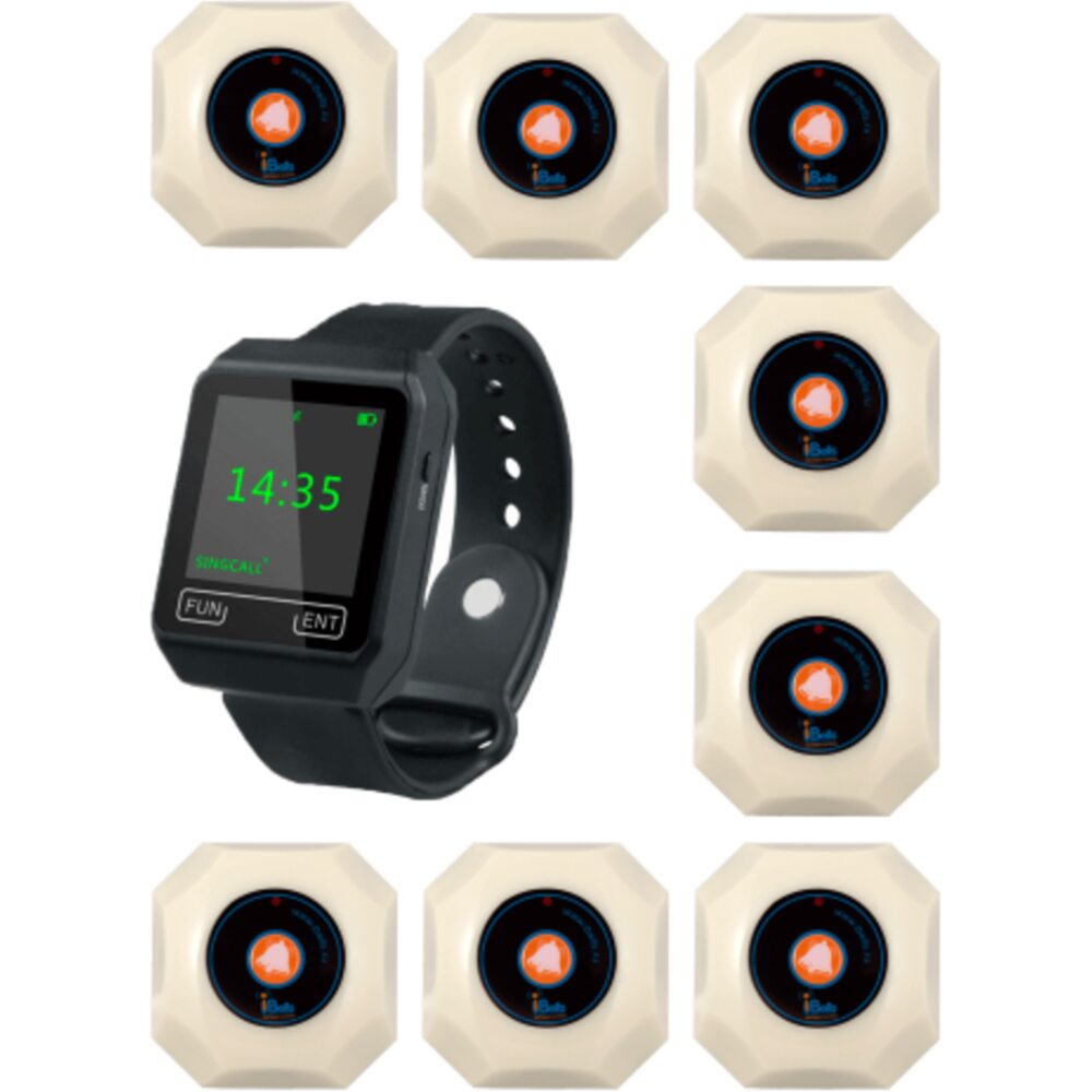 Комплект системы вызова персонала включает в себя: влагозащищённый наручный пейджер iBells 68 и 8 кнопок вызова iBells 301 (белый). Комплект подойдет для любого заведения, где может потребоваться вызов персонала посетителями: в кафе, ресторане, отеле, фитнес центре, в супермаркете или магазине одежды, в медицинском учреждении и тд. Также система подходит для организации связи между персоналом.