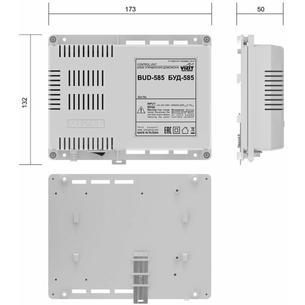 Блок управления периметрового домофона БУД-585 используется совместно с другими блоками серии 500 (блоки вызова БВД-532FCB, блоки коммутации БК-501, БК-502, разветвители видеосигнала РВС-502) в составе системы ограничения доступа на придомовую территорию.