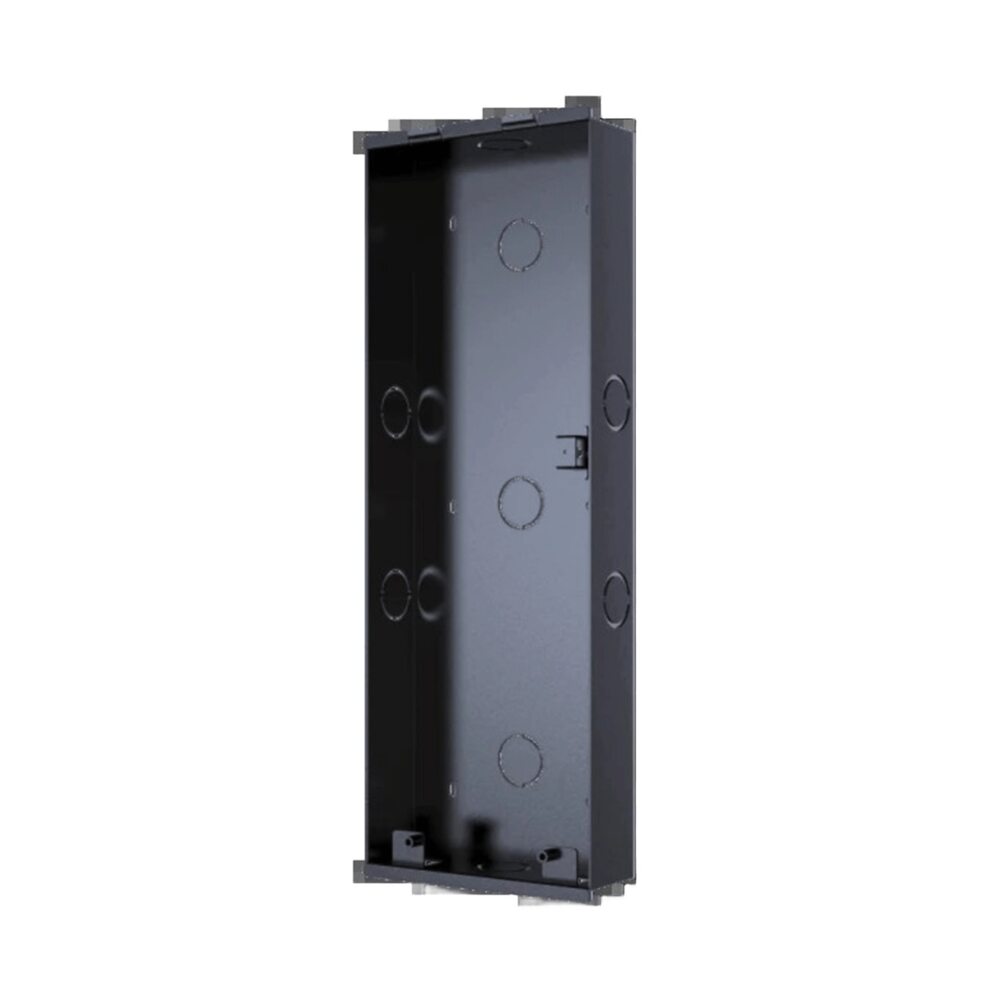 Данная монтажная коробка изготовлена из металла и разработана специально для монтажа IP вызывных панелей серии Akuvox X915 на стены / в стены из бетона, кирпича и других материалов. Посадочные отверстия точно соответствуют расположению отверстий для крепежных болтов на лицевой панели вызывных панелей серии X915