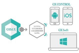 Для настройки модуля предназначено специализированное ПО GX Soft. Соединение ПК с предустановленным ПО и модуля GSM-X может выполняться локально (через mini-USB) или удаленно (по Ethernet* или GPRS) .