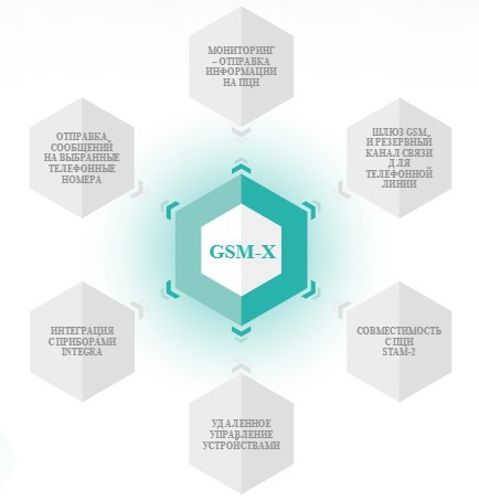 GSM-X кроме расширенного функционала обеспечивает поддержку различных каналов связи. Модуль совместим с любой системой охранной сигнализации. Он позволяет отправлять информацию, полученную от прибора, на ПЦН либо в ЧОП, либо непосредственно заинтересованным лицам. Для сопряжения устройств могут использоваться их входы и выходы или телефонный модуль автодозвона прибора.