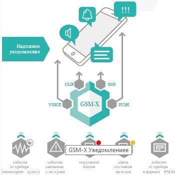 Универсальный интерфейс связи GSM-X, в зависимости от настройки, может отправлять сообщения по всем этим каналам одновременно. Благодаря этому информация будет доставлена даже в том случае, когда один из каналов окажется недоступным.