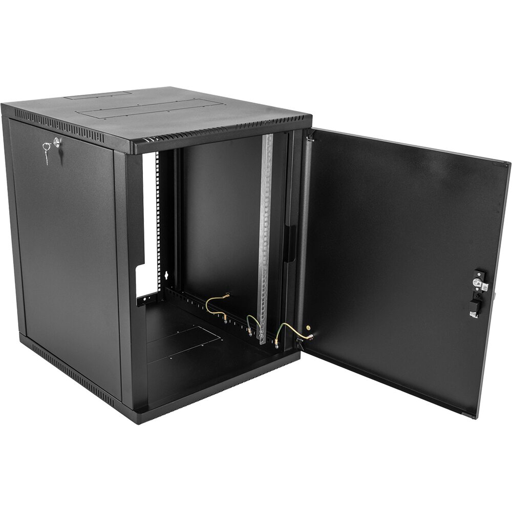 Настенный шкаф 19 ШРН имеет цельнометаллическую сварную конструкцию, он удобен для быстрой установки и монтажа оборудования, так как не требует сборки. Отсутствие острых углов с фронтальной стороны повышают безопасность при эксплуатации и обслуживании шкафов, что помогает исключить человеческие травмы при соприкосновении со шкафом. Возможна комплектация дверью с тонированным ударопрочным стеклом, сплошной металлической дверью. Новая конструкция стеклянной двери с механическим креплением стекла увеличивает её жесткость, и обеспечивает легкую замену стекла при его повреждении. Возможна установка двери, как с правой, так и с левой стороны. Новый усиленный точечный замок с поворотной ручкой увеличивает жесткость фиксации двери в закрытом положении и защиту от несанкционированного доступа, а также обеспечивает удобство при её открывании.