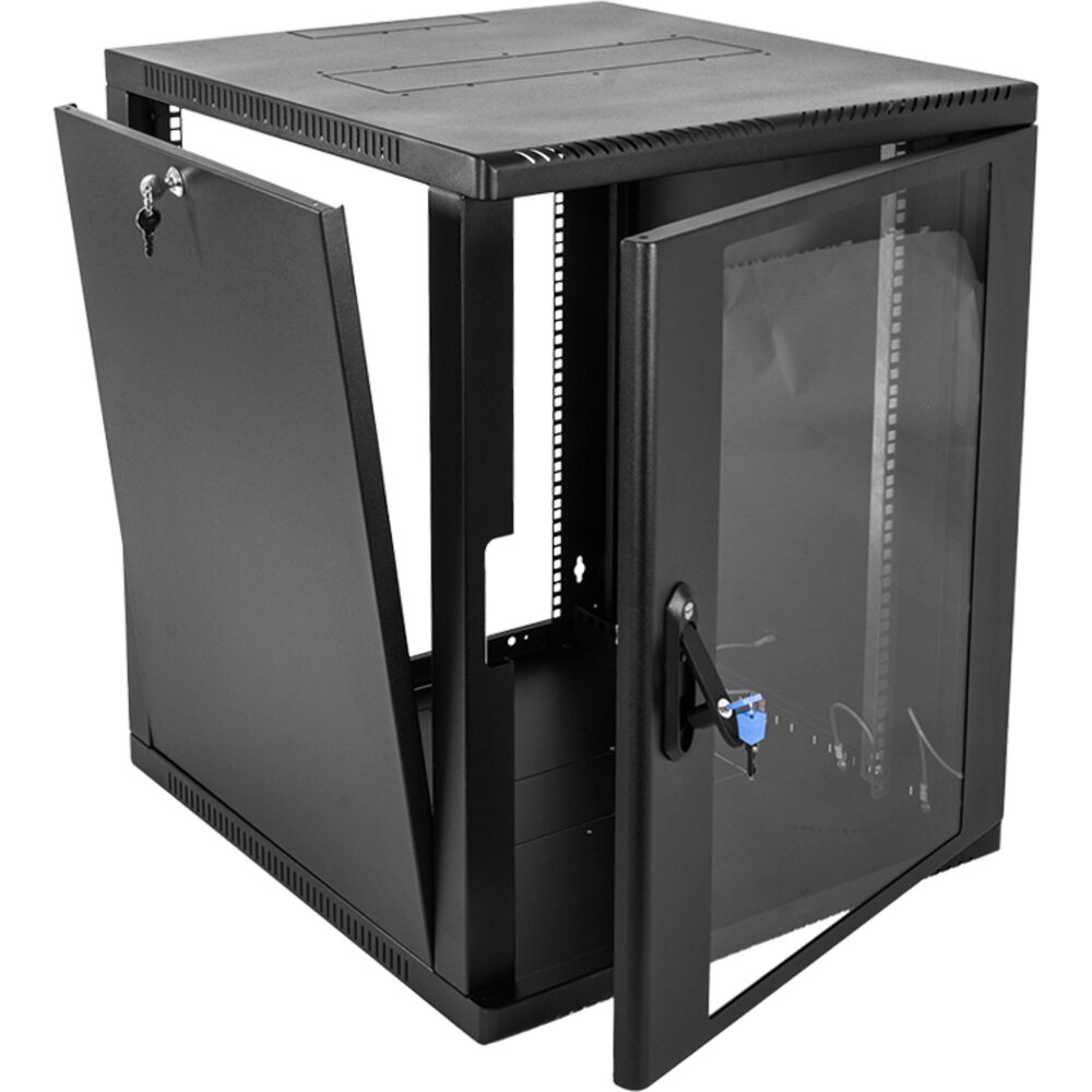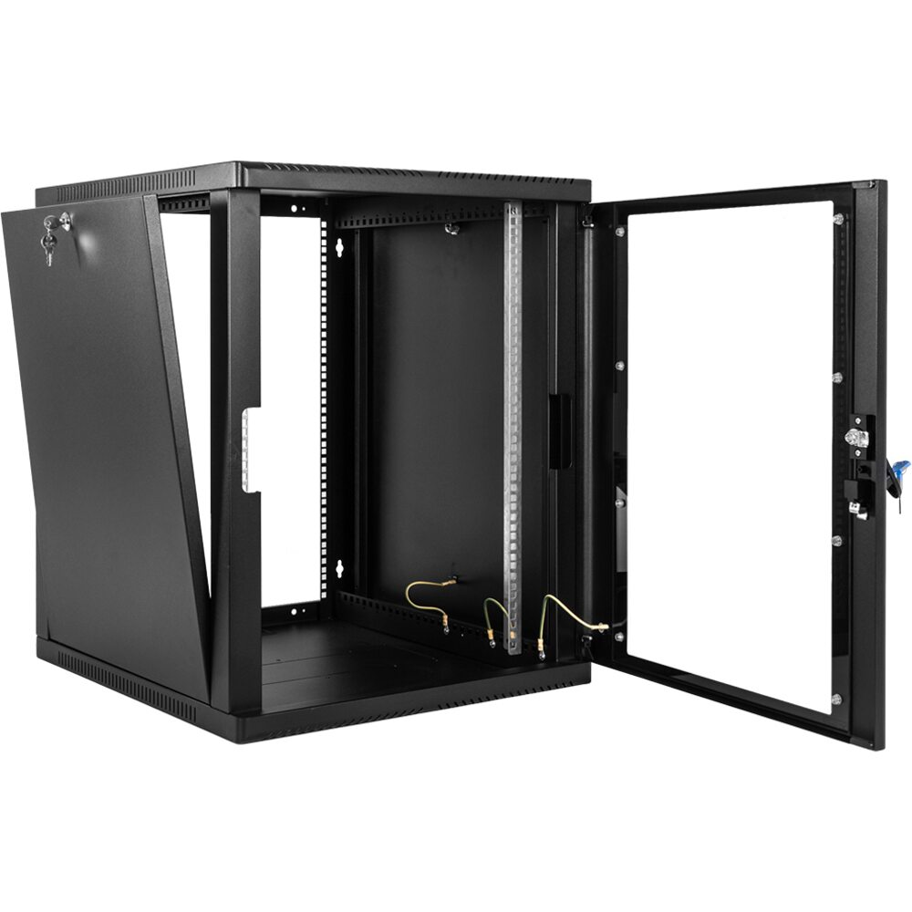 Настенный шкаф 19 ШРН имеет цельнометаллическую сварную конструкцию, он удобен для быстрой установки и монтажа оборудования, так как не требует сборки. Отсутствие острых углов с фронтальной стороны повышают безопасность при эксплуатации и обслуживании шкафов, что помогает исключить человеческие травмы при соприкосновении со шкафом. Возможна комплектация дверью с тонированным ударопрочным стеклом, сплошной металлической дверью. Новая конструкция стеклянной двери с механическим креплением стекла увеличивает её жесткость, и обеспечивает легкую замену стекла при его повреждении. Возможна установка двери, как с правой, так и с левой стороны. Новый усиленный точечный замок с поворотной ручкой увеличивает жесткость фиксации двери в закрытом положении и защиту от несанкционированного доступа, а также обеспечивает удобство при её открывании.