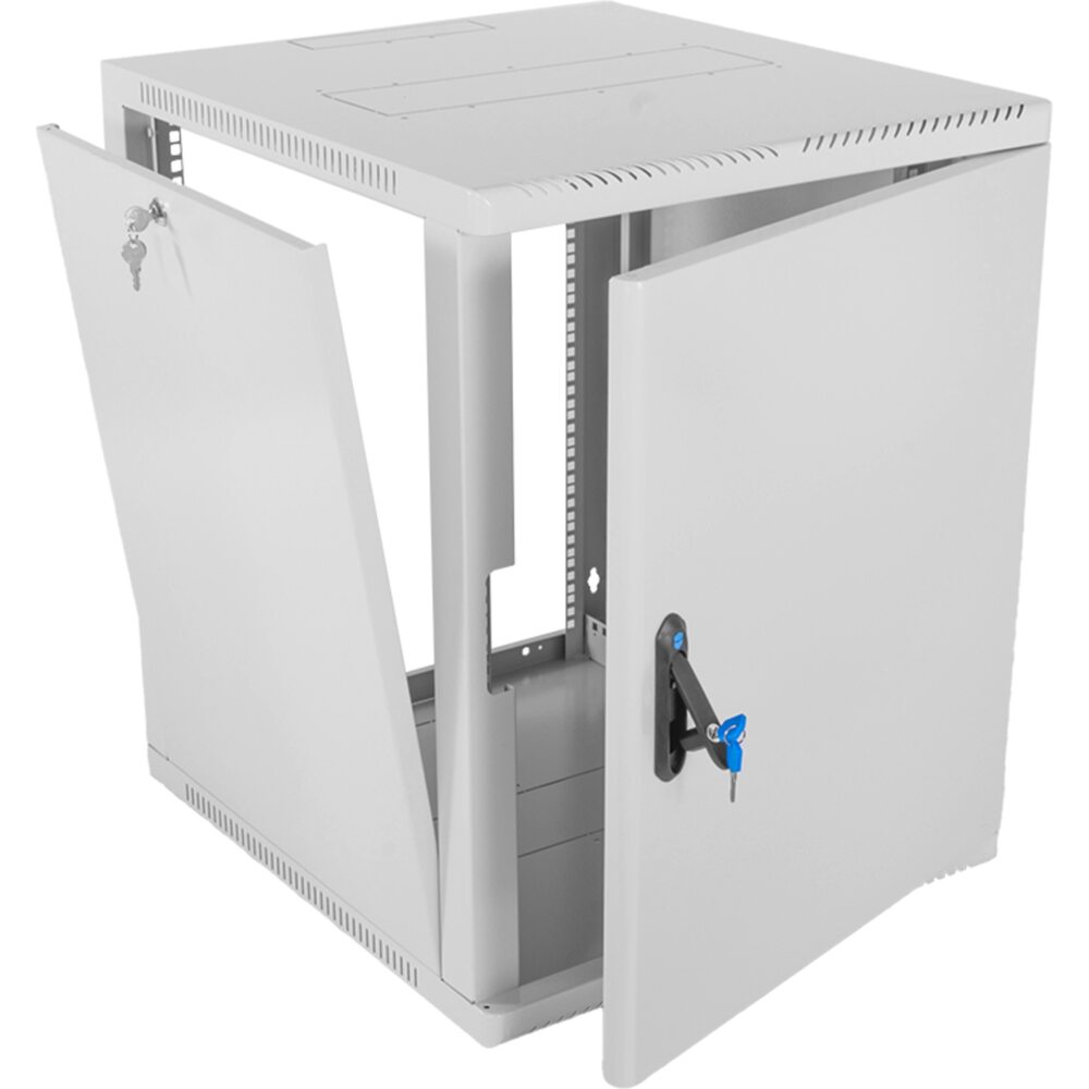 Настенный шкаф 19 ШРН имеет цельнометаллическую сварную конструкцию, он удобен для быстрой установки и монтажа оборудования, так как не требует сборки. Отсутствие острых углов с фронтальной стороны повышают безопасность при эксплуатации и обслуживании шкафов, что помогает исключить человеческие травмы при соприкосновении со шкафом. Возможна комплектация дверью с тонированным ударопрочным стеклом, сплошной металлической дверью. Новая конструкция стеклянной двери с механическим креплением стекла увеличивает её жесткость, и обеспечивает легкую замену стекла при его повреждении. Возможна установка двери, как с правой, так и с левой стороны. Новый усиленный точечный замок с поворотной ручкой увеличивает жесткость фиксации двери в закрытом положении и защиту от несанкционированного доступа, а также обеспечивает удобство при её открывании.