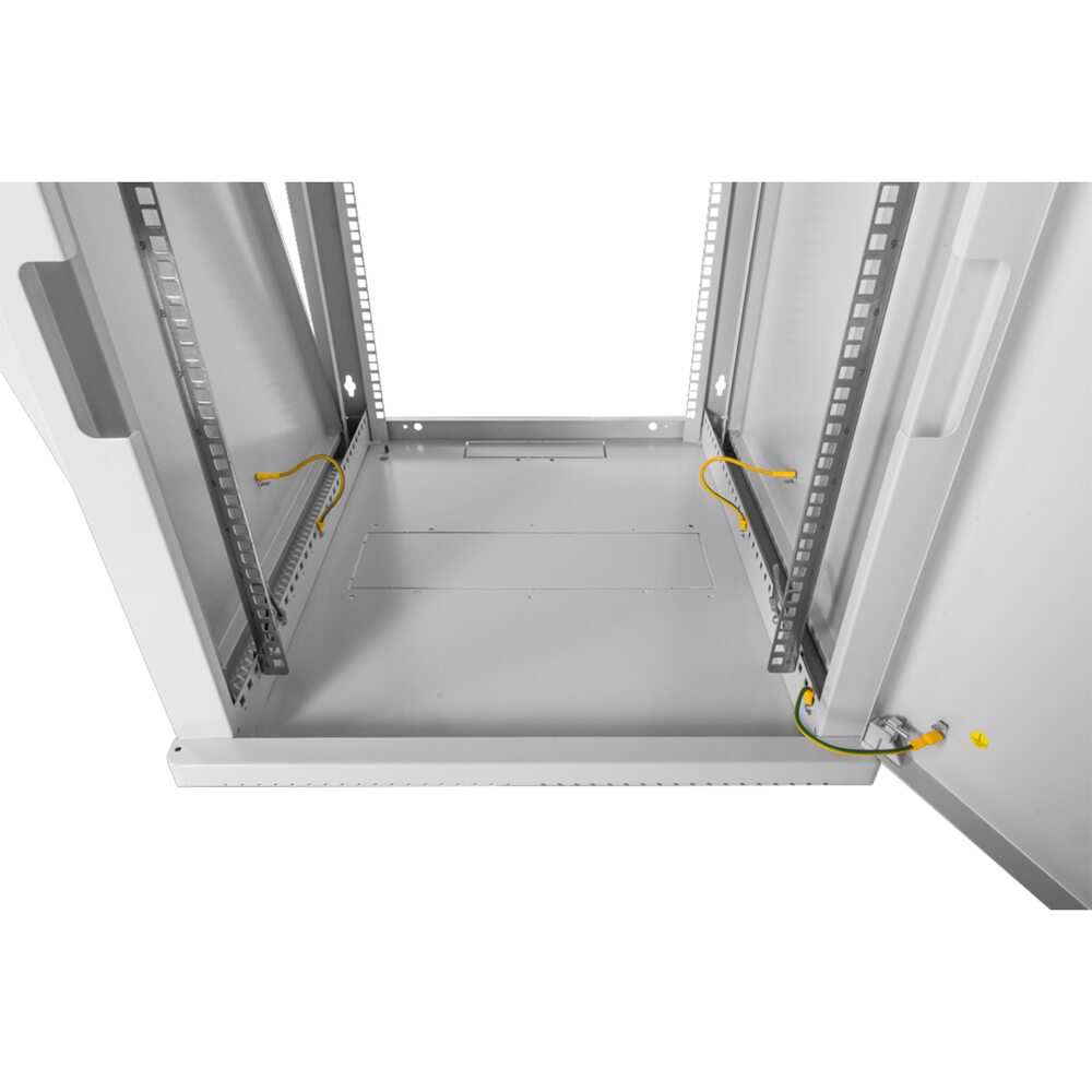 Настенный шкаф 19 ШРН устанавливается на стену через отверстия в задней стенке, доступ к оборудованию возможен с двух сторон. В крыше и основании ШРН предусмотрены места для установки вентиляторных модулей R-FAN и щёточных вводов КВ-Щ . Система заземления входит в стандартную комплектацию шкафа. Вертикальные направляющие регулируются по глубине. Задняя часть корпуса шкафа имеет юнитовую перфорацию, что позволяет производить монтаж оборудования и аксессуаров имеющих четыре точки крепления. Также возможна установка второй пары вертикальных направляющих. Возможна установка задней стенки. Настенный шкаф 19 ШРН поставляется в собранном виде.