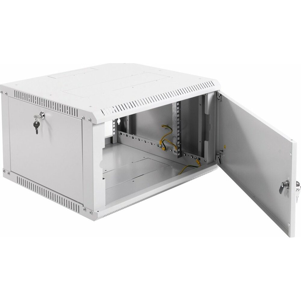 Настенный шкаф 19 ШРН имеет цельнометаллическую сварную конструкцию, он удобен для быстрой установки и монтажа оборудования, так как не требует сборки. Отсутствие острых углов с фронтальной стороны повышают безопасность при эксплуатации и обслуживании шкафов, что помогает исключить человеческие травмы при соприкосновении со шкафом. Возможна комплектация дверью с тонированным ударопрочным стеклом, сплошной металлической дверью. Новая конструкция стеклянной двери с механическим креплением стекла увеличивает её жесткость, и обеспечивает легкую замену стекла при его повреждении. Возможна установка двери, как с правой, так и с левой стороны. Новый усиленный точечный замок с поворотной ручкой увеличивает жесткость фиксации двери в закрытом положении и защиту от несанкционированного доступа, а также обеспечивает удобство при её открывании.