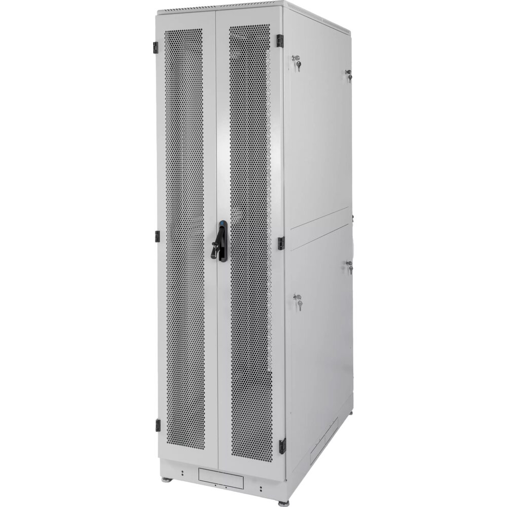 Шкаф серверный напольный 42U (600 1200) дверь перфорированная, задние двойные перфорированные, цвет черный.
