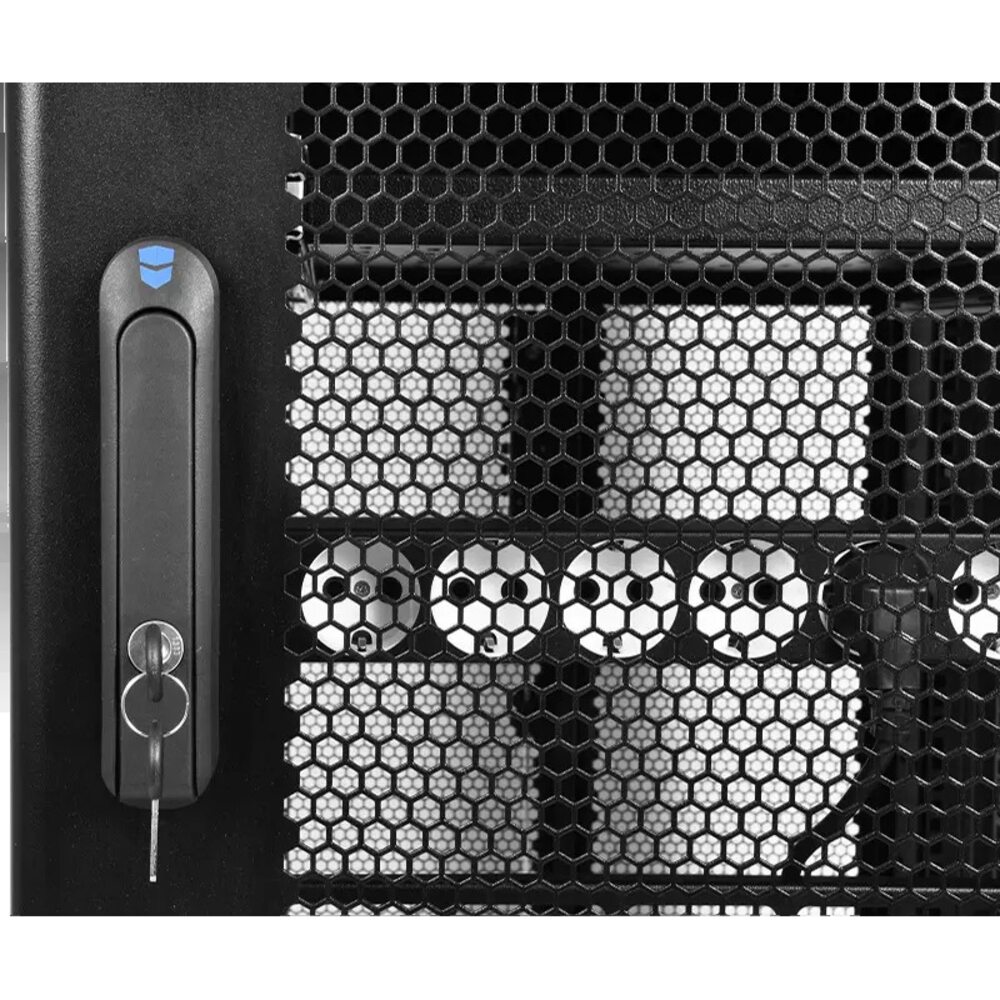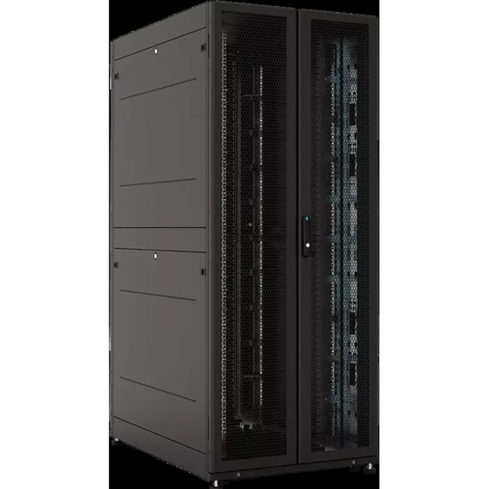 Шкаф имеет две массивные сварные рамы, соединенные комплектом швеллеров, что обеспечивает повышенную жесткость конструкции. В зависимость от комплектации шкаф может поставляться с передней и задней перфорированными дверьми (одностворчатыми или двухстворчатыми) усиленными боковыми стенками. Двери фиксируются замками с ручкой. Возможно установка двери как с левой, так и справой стороны. Двери имеют возможность быстрого безинструментального снятия и установки. Боковые проемы закрываются двумя боковыми стенками. Стенки фиксируются точечными замками. Крыша имеет заглушенные отверстия под кабельные вводы. Так же в крыше предусмотрены отверстия для крепления кабельных каналов фиксатором КГЛ (в комплект поставки не входит).