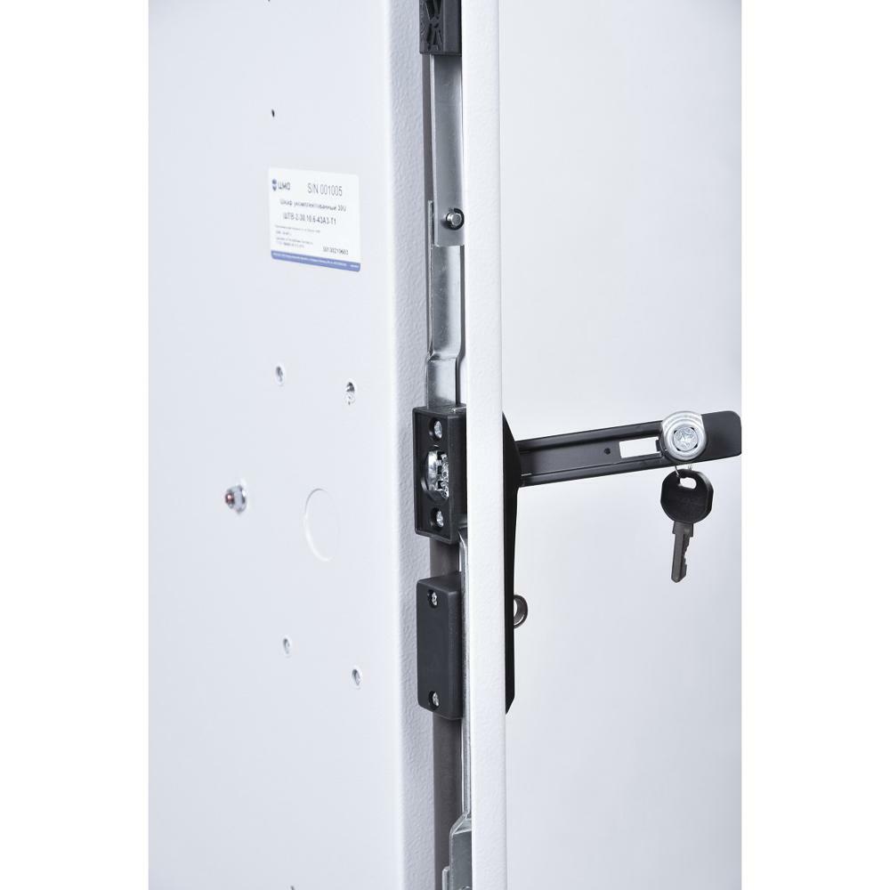 В основании шкафа предусмотрены отверстия для ввода кабелей. В дне каркаса и стенке между отсеками (для ШТВ-2) возможно разное количество отверстий разного диаметра для установки кабельных вводов по требованию заказчика. В комплект поставки входят два кабельных ввода с гайкой М32 (типа MG32A-25G), 10 резиновых заглушек для отверстий под ввод кабеля, а также набор для блокировки задней двери изнутри шкафа.