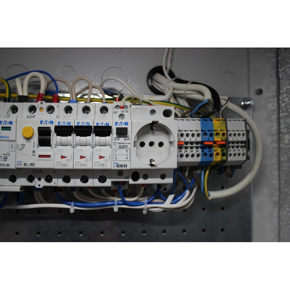 Питание изделия осуществляется от электрической сети переменного тока напряжением 220 В частотой 50 Гц. Для шкафов двухсекционных моделей ШТВ-2 предусмотрена возможность подключения резервного питания через розетку (вилку) 32 А типа DEKraft серии ВЩ-102 (или аналогичной) от внешнего источника номинальным напряжением 220 В частотой 50 Гц.