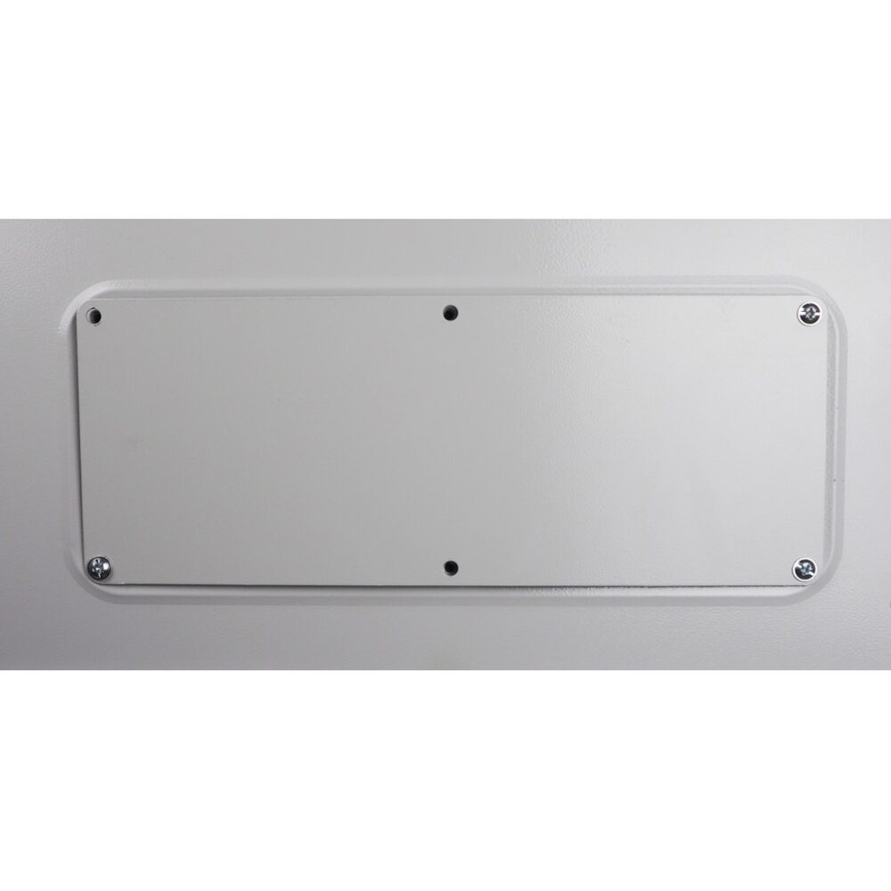 В основании шкафа предусмотрены съёмные заглушки для ввода кабелей. Конструкция заглушек предполагает разное количество и диаметр отверстий для установки кабельных вводов по желанию заказчика. (В комплект изделия входит один кабельный ввод для подключения питания шкафа).