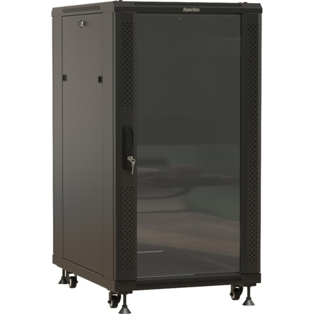 Hyperline TTBR-2768-AS-RAL9004 Шкаф напольный 19-дюймовый, 27U, 1388x600х800 мм (ВхШхГ), передняя стеклянная дверь со стальными перфорированными боковинами, задняя дверь сплошная, ручка с замком, цвет черный (RAL 9004) (разобранный)