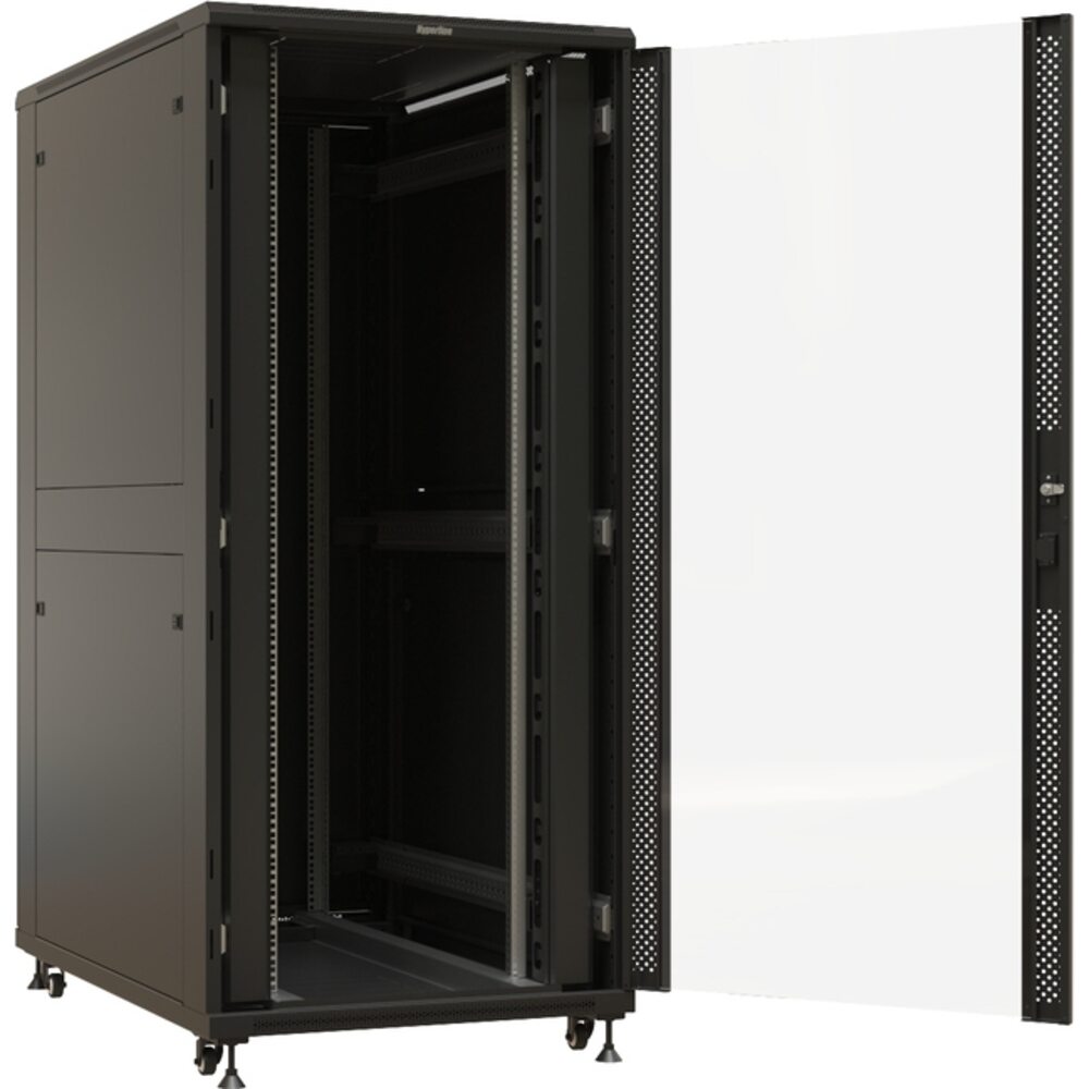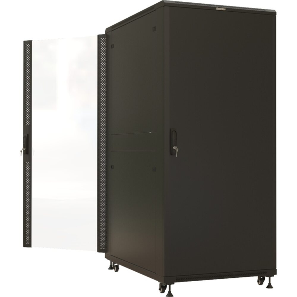 Hyperline TTBR-3781-AS-RAL9004 Шкаф напольный 19-дюймовый, 37U, 1833х800х1000 мм (ВхШхГ), передняя дверь стеклянная, задняя дверь сплошная, ручка с замком, 2 вертикальных кабельных организатора, цвет черный (RAL 9004) (разобранный)