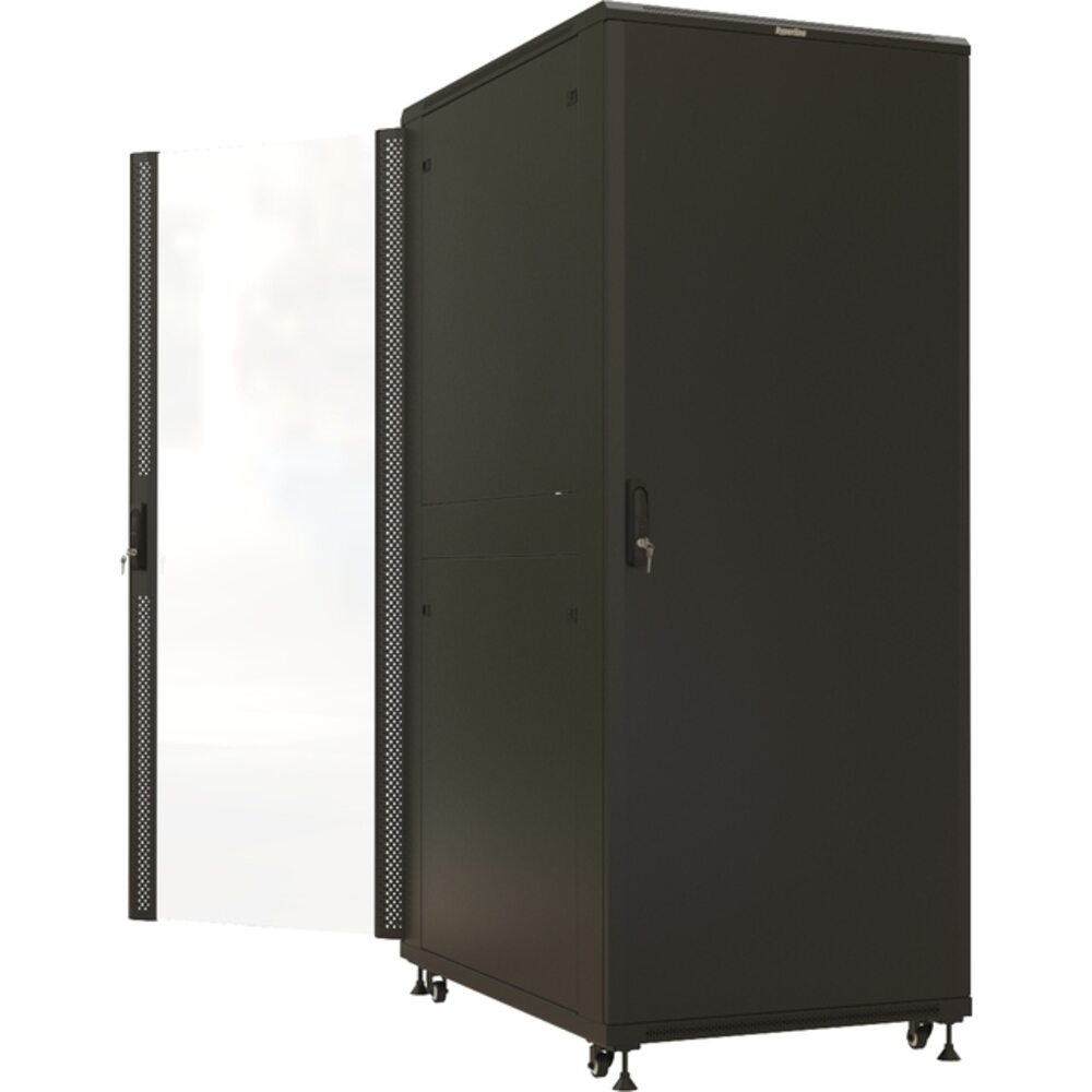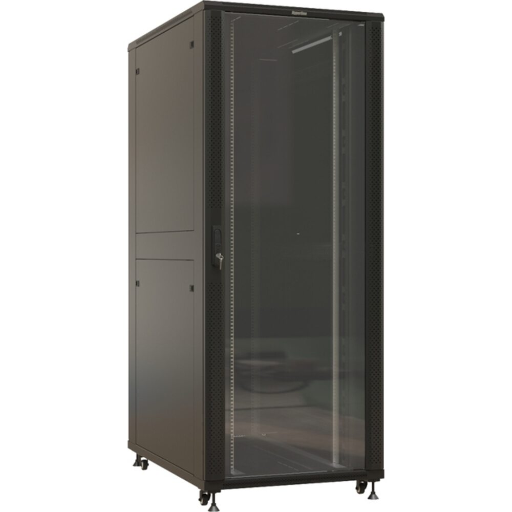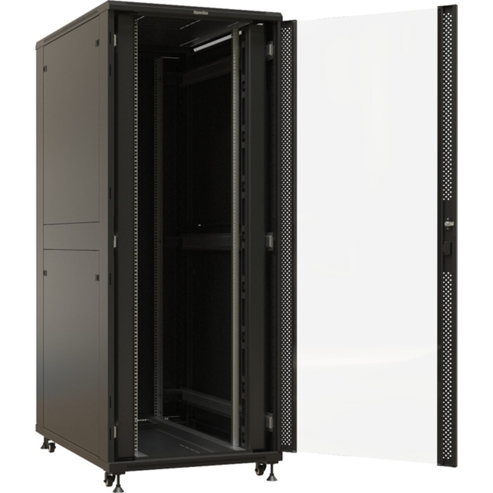 Hyperline TTBR-4288-AS-RAL9004 Шкаф напольный 19-дюймовый, 42U, 2055x800х800 мм (ВхШхГ), передняя дверь стеклянная, задняя дверь сплошная, ручка с замком, 2 вертикальных кабельных организатора, цвет черный (RAL 9004) (разобранный)