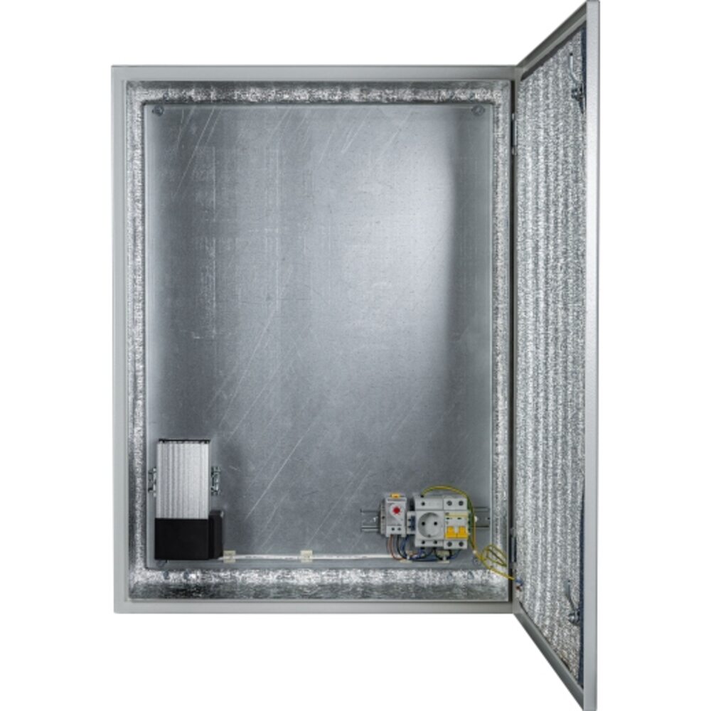 Комплектация: утеплитель из порилекса НПЭ, замок 2 шт, ключ 1 шт, монтажная плата 1шт, люк под геромовводы 1 шт, гермовводы 5 шт, розетка 1 шт, автоматический выключатель 1шт, термореле 1шт, нагреватель мощностью в 250 Вт 1шт.