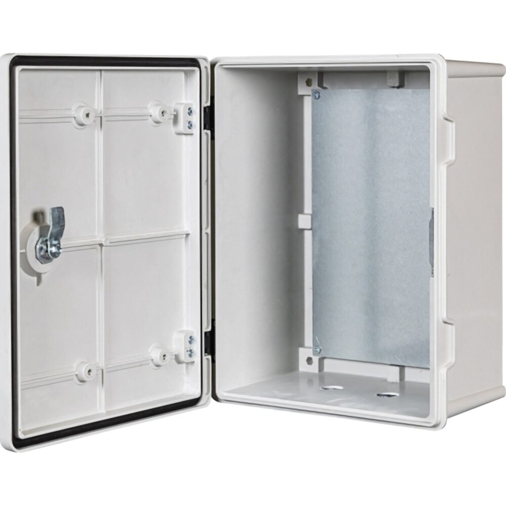 Шкаф представляет собой конструкцию, состоящую из корпуса и дверцы. Корпус и дверца изготовлены из технологичного SMC -композитаметодом штамповки на гидравлическом прессе. Внутри корпуса установлена оцинкованная монтажная панель на задней стенке. Толщина корпуса и дверцы до 4 мм., RAL 7035. Шкаф ударопрочный (IK10), форма недеформируемая. Степень защиты IP66. Шкаф обладает диэлектрическими свойствами, радиопрозрачный, не подвержен коррозии. Не требует заземления.