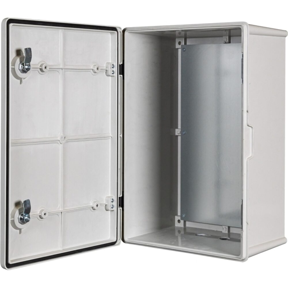 Шкаф представляет собой конструкцию, состоящую из корпуса и дверцы. Корпус и дверца изготовлены из технологичного SMC -композита методом штамповки на гидравлическом прессе. Внутри корпуса установлена оцинкованная монтажная панель на задней стенке. Толщина корпуса и дверцы до 4 мм., RAL 7035. Шкаф ударопрочный (IK10), форма недеформируемая. Степень защиты IP66 (уплотнение по технологии гаскетинга: пенополиуретан или пеносиликон). Шкаф обладает диэлектрическими свойствами, радиопрозрачный, не подвержен коррозии.