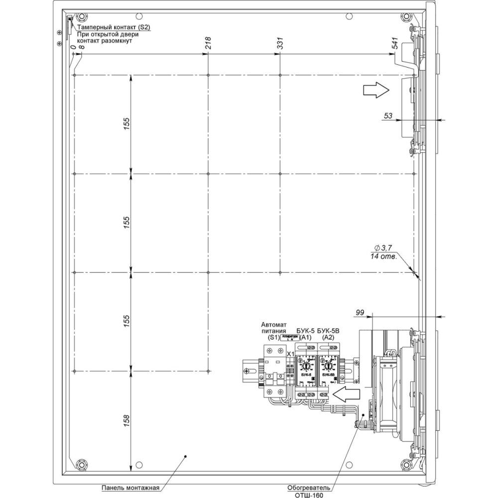 На монтажной панели предусмотрены отверстия 3,7 мм (под саморез ST4,2), для установки дополнительных DIN-реек.
