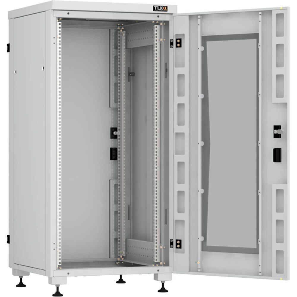Спереди и сзади имеется дверь. Слева и справа шкафа имеются съемные панели. Ввод кабеля осуществляется через основание шкафа или через крышу, через кабельные вводы, которые закрыты выламываемыми заглушками. Количество кабельных вводов: в основании - 2 шт (выламываемый), в крыше 1 шт (выламываемый). Размер отверстий кабельного ввода составляет 270х56мм. Имеются посадочные места в крыше под установку вентиляторного блока. На выбор, можно установить вентиляторный блок на 2 вентилятора или вентиляторный блок на 4 вентилятора. Размеры посадочного места под установку вентиляторного блока в крышу и дно шкафа составляет 270х270мм. Передняя дверь открывается на угол до 180 градусов. Боковые стенки шкафа являются съемными, за счет чего доступ к установленному в шкаф оборудованию может осуществляться с четырёх сторон.