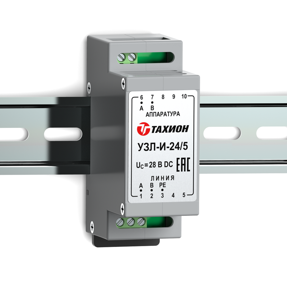 Устройство защиты интерфейсов с подачей питания УЗЛ-И-24/5 предназначено для защиты от импульсных перенапряжений (грозовых, электростатических разрядов и др.) оборудования промышленной автоматизации, диспетчеризации, систем безопасности, использующих 2х проводные линии интерфейса RS-485, RS-422, M-bus, CAN и их разновидностей, в пределах 2 3 зон молниезащиты (в соответствии с МЭК 61312-1). Устройство обеспечивает передачу питания 24 В DC по сигнальным парам с величиной тока до 5 А.