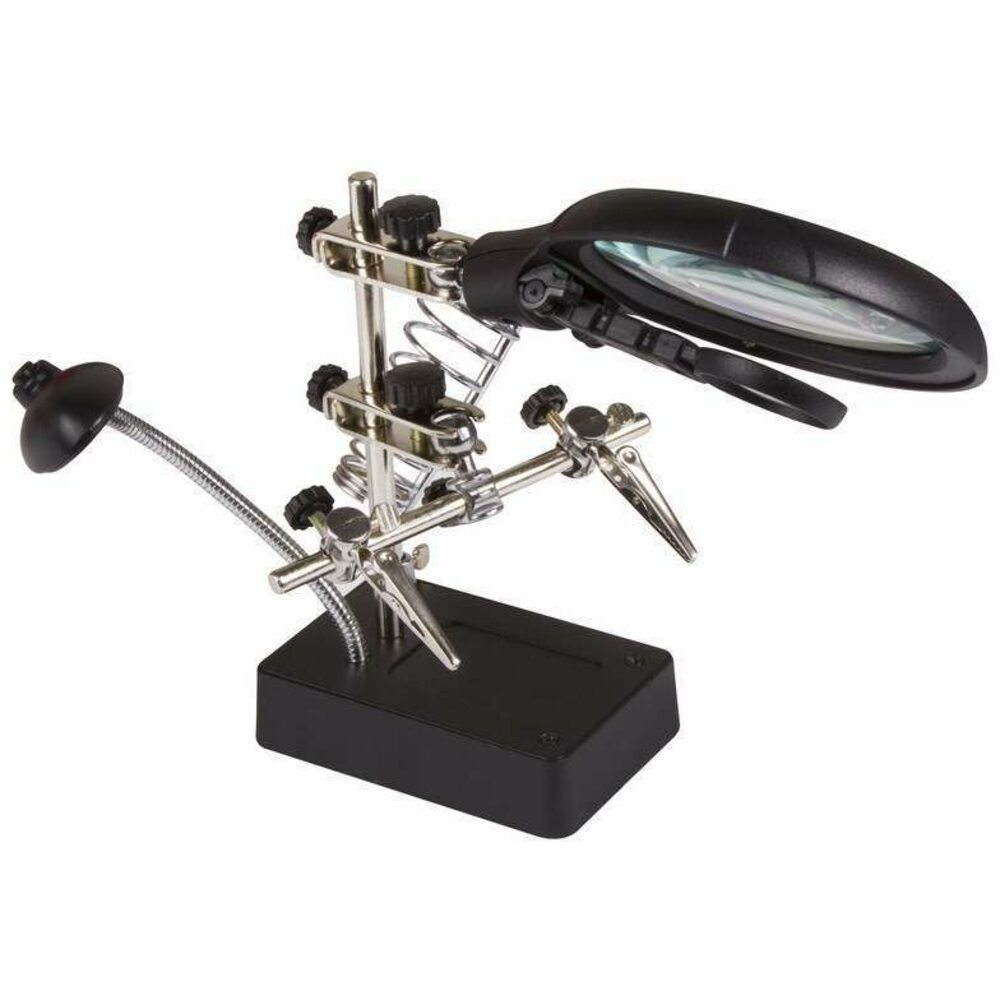 Держатель 'третья рука' с лупой х2.5 подставка под паяльник LED подсветка Rexant 12-0250