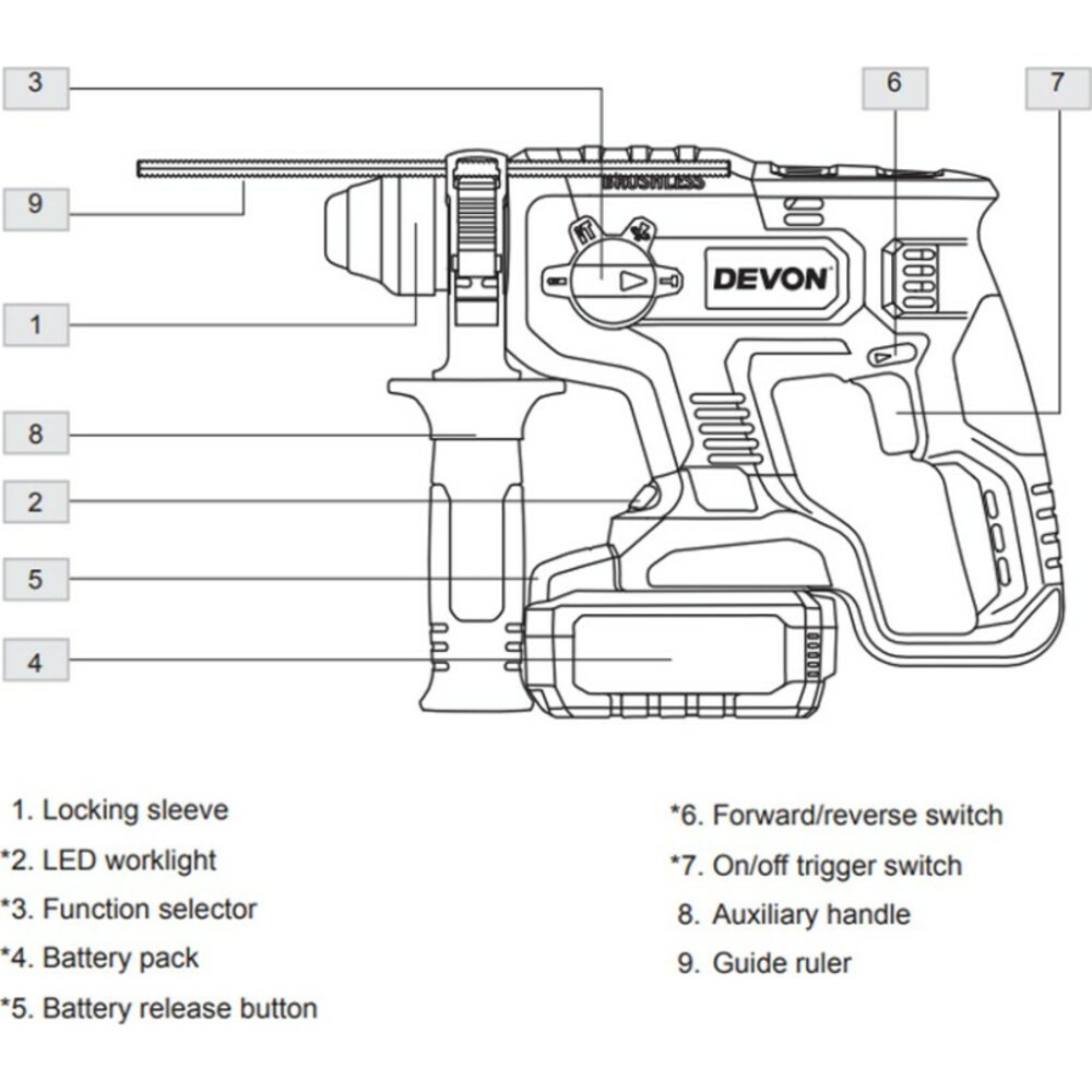 Аккумуляторный перфоратор DEVON 5401-Li-20RH без аккумулятора и ЗУ