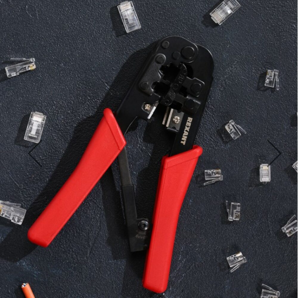 Кримпер REXANT HT-568R универсальный инструмент для обжима разъемов RJ-45 (8P8C), RJ-12 (6P6C) и RJ-11 (6P4C и 6P2C), а также для снятия изоляции и обрезки проводов.