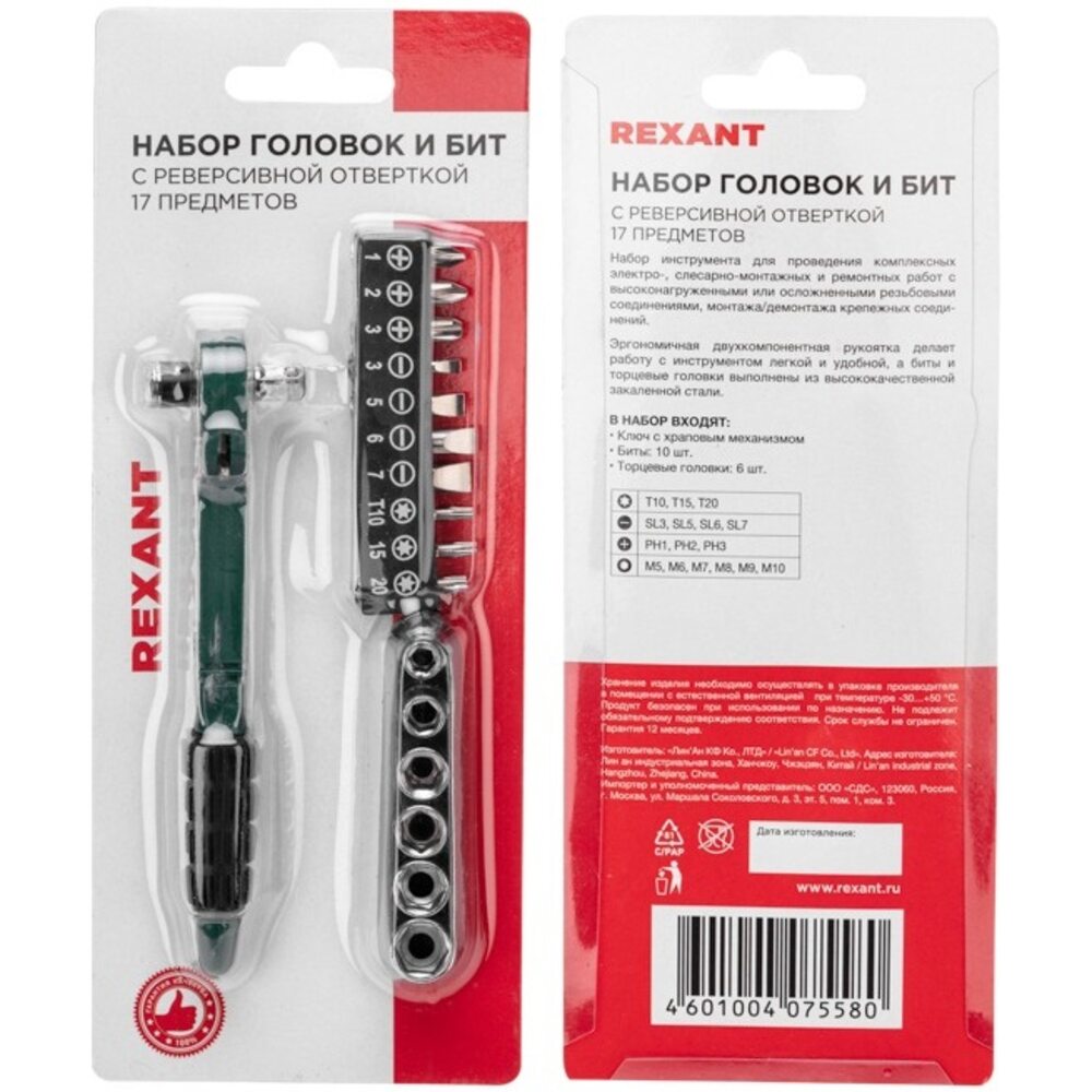 Набор головок и бит с ключом-трещоткой 17 предметов Rexant (12-6070)