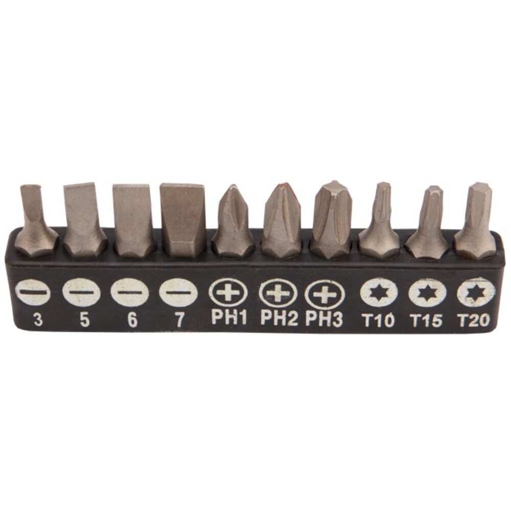 В комплекте поставляются биты: SL3, SL5, SL6, SL7, T10, T15, T20, PH1, PH2, PH3.