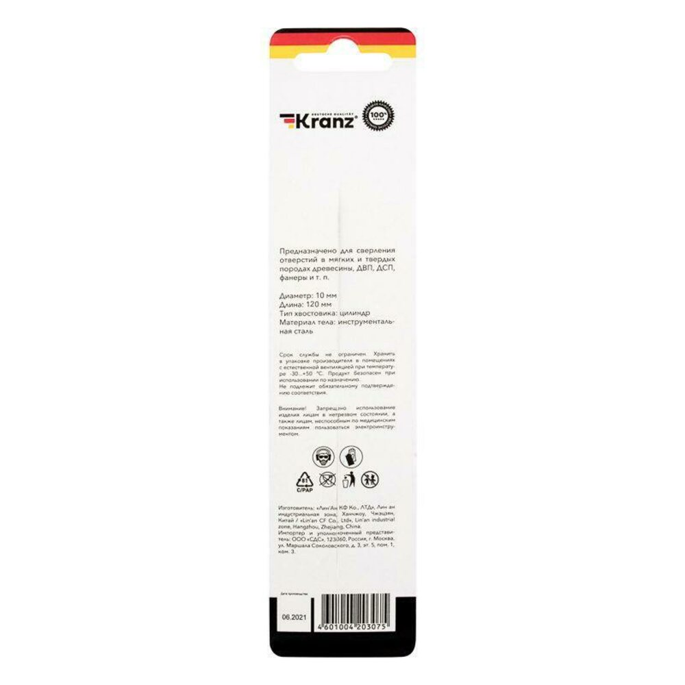 Сверло по дереву 10х130мм цилиндрический хвостовик Kranz KR-91-0739