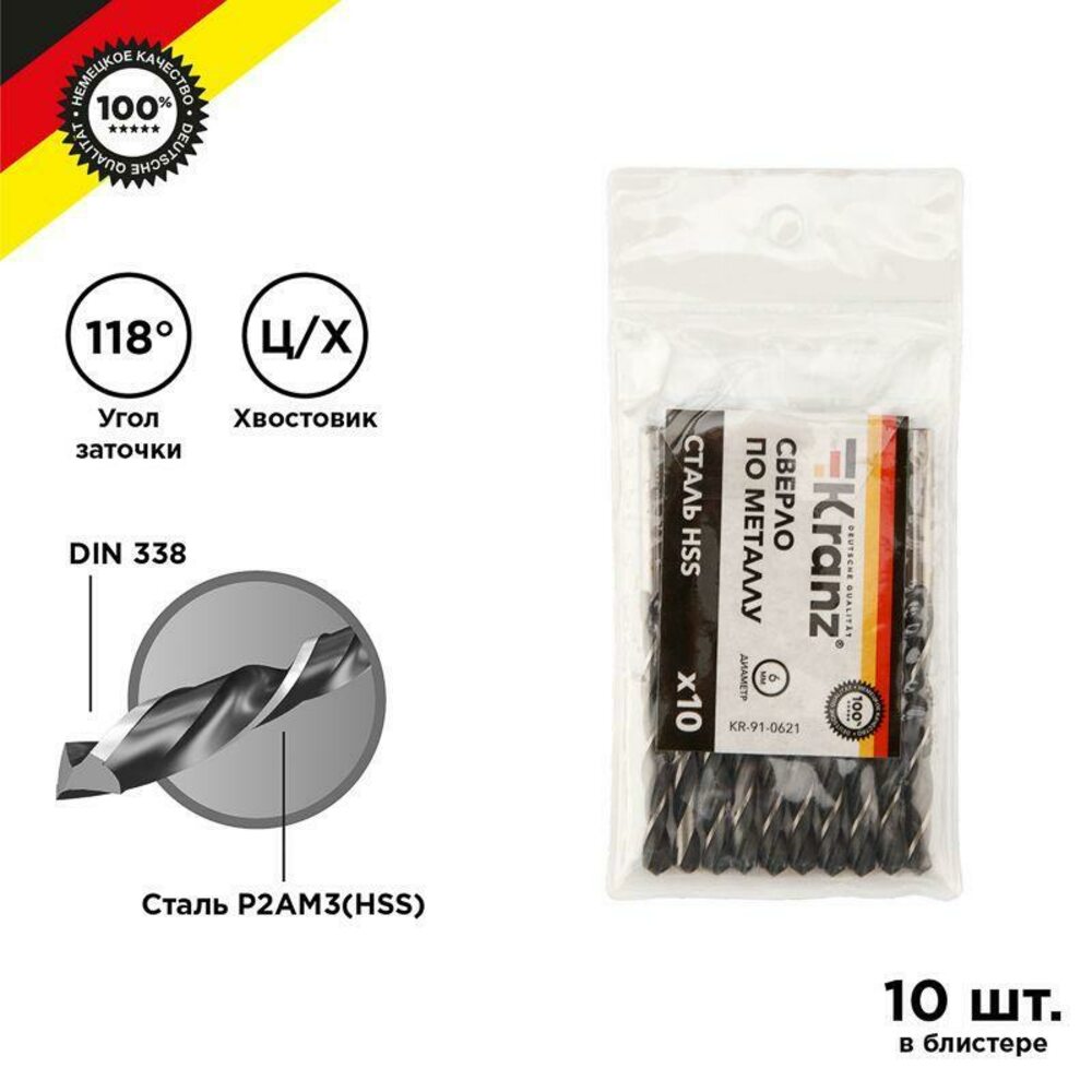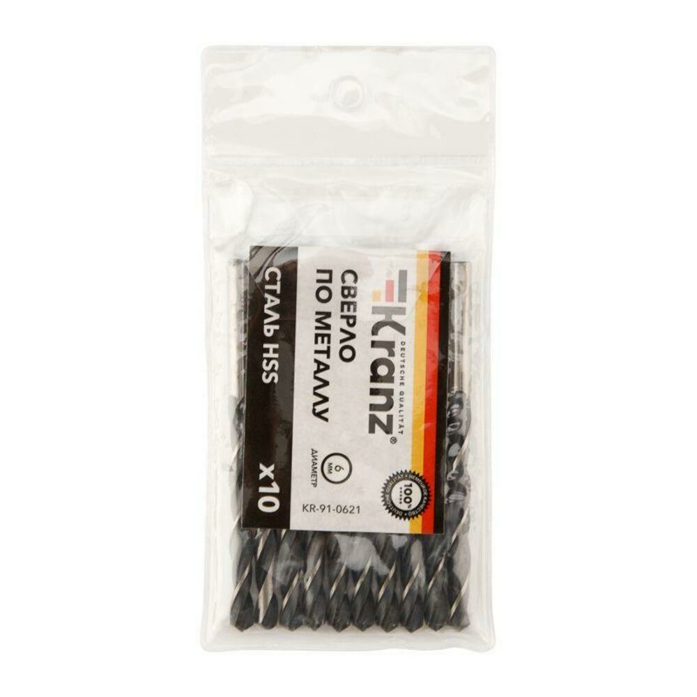 Сверло по металлу 6.0мм HSS DIN 338 (уп.10шт) Kranz KR-91-0621