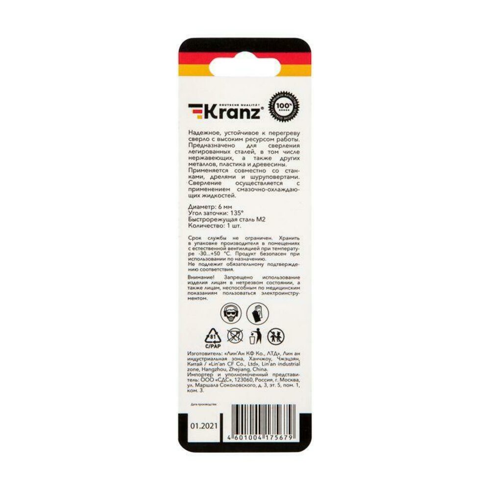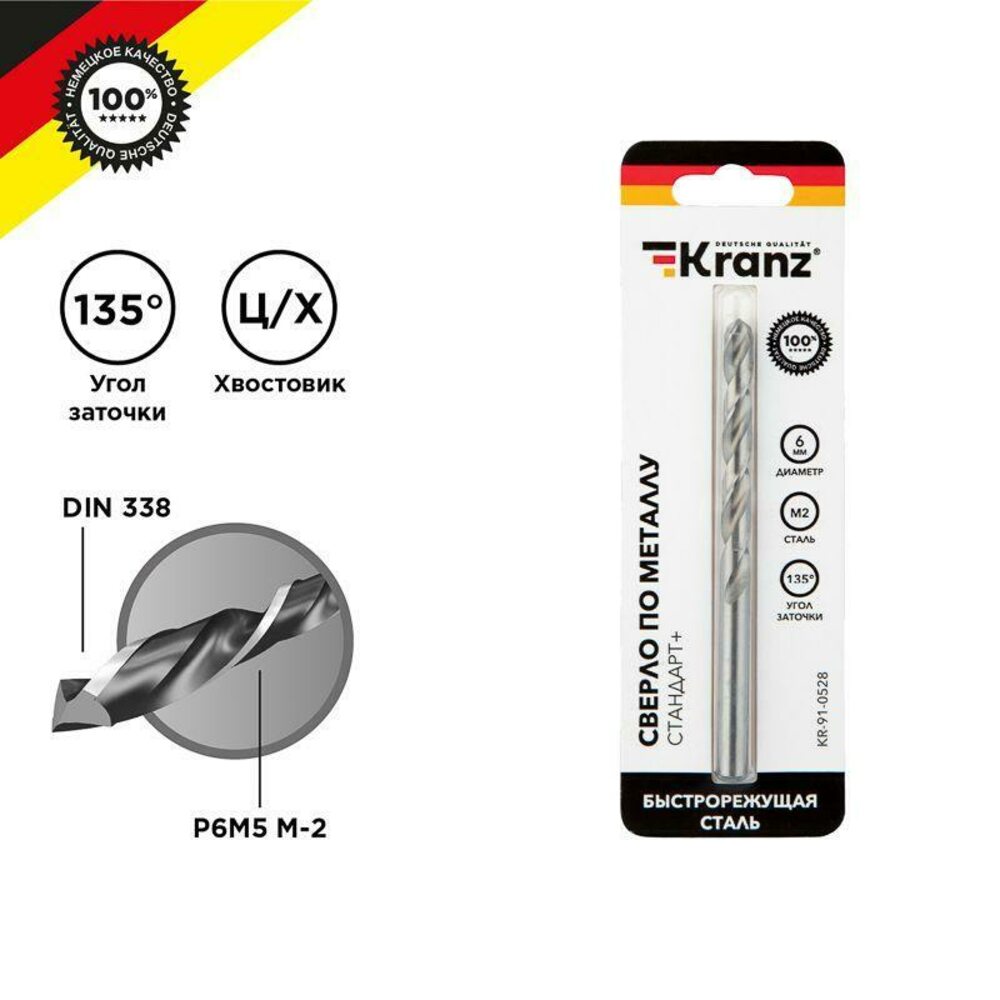 Сверло по металлу 6мм 'Стандарт+' (P6M5 M-2) DIN 338 (блист.1шт) Kranz KR-91-0528