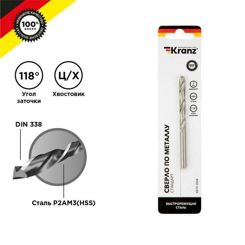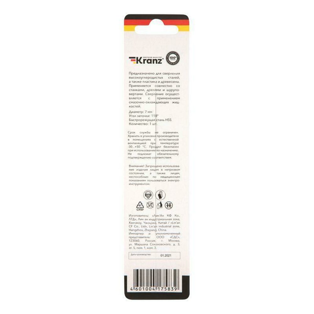 Сверло по металлу 7.0мм HSS DIN 338 (уп.1шт) Kranz KR-91-0568