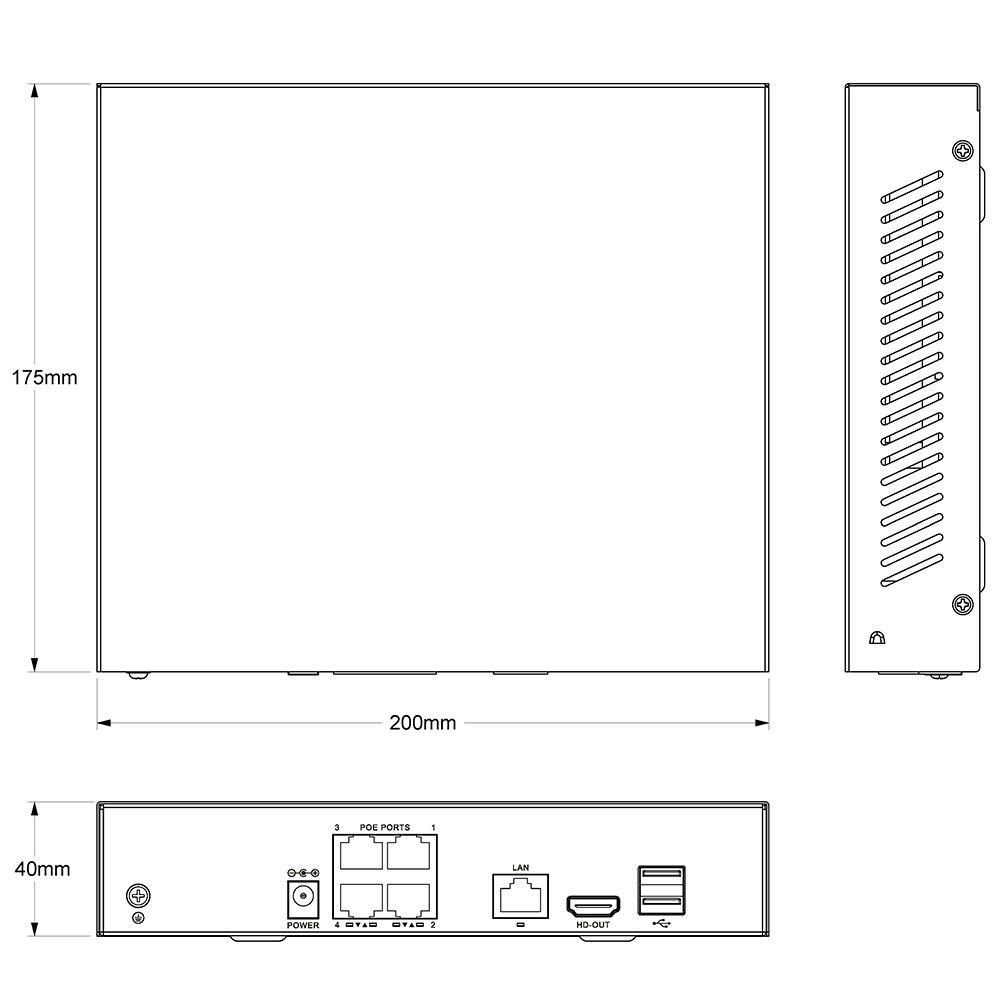 Габаритные размеры: 200(ш) x 175(г) x 40(в) мм