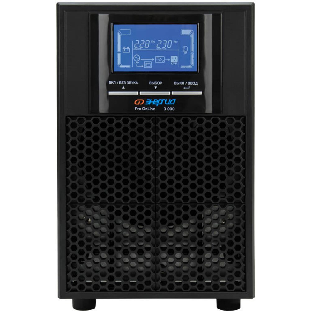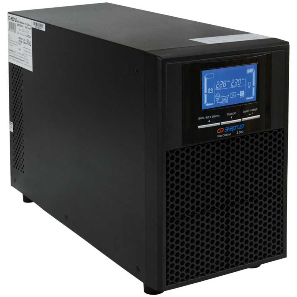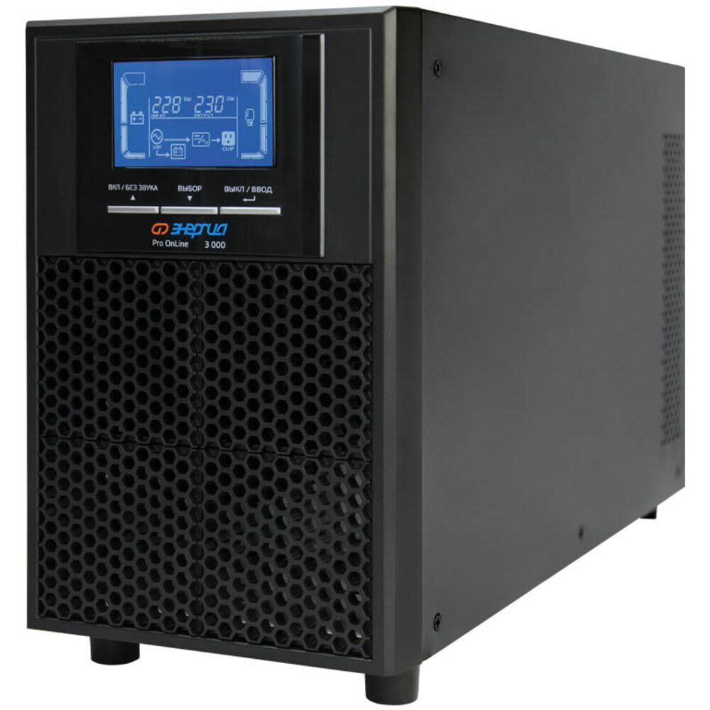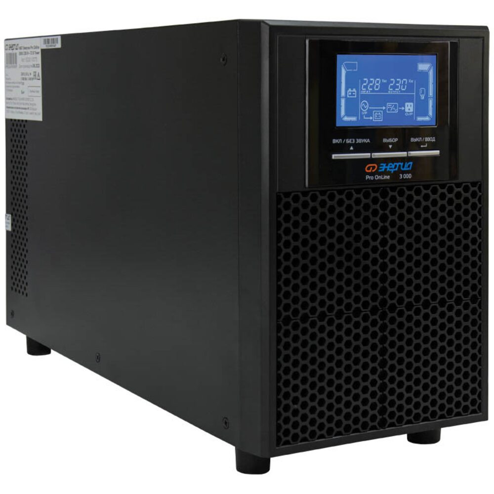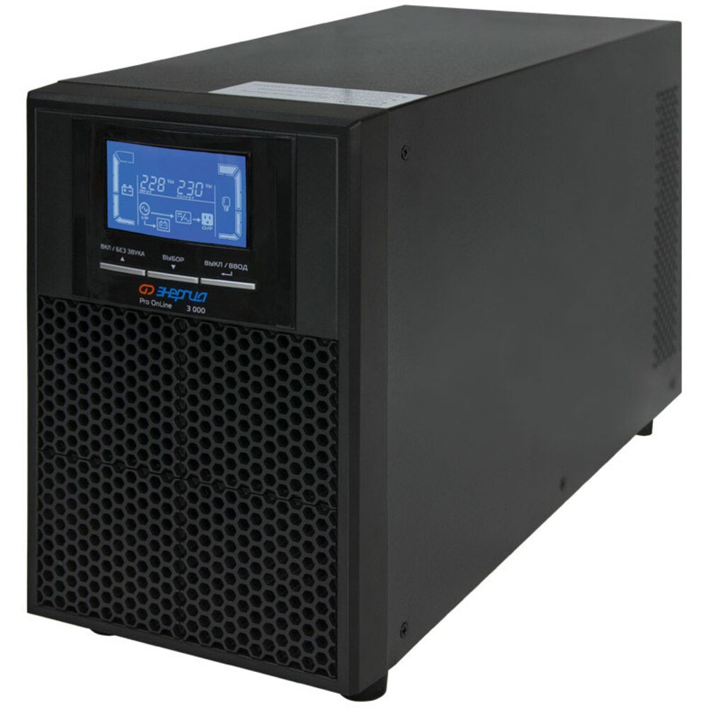 ИБП Энергия Pro Online 3000 230В-72В Tower. Модели ИБП Pro OnLine Tower предназначены для обеспечения резервного электроснабжения приборов бытового назначения, для которых недопустимы перерывы в электропитании по условиям их функционирования. Благодаря применению принципа высокочастотного двойного преобразования ИБП Pro OnLine Tower обеспечивают подачу напряжения синусоидальной формы, защищая потребителей от скачкообразных изменений входного напряжения, электрических помех и высоковольтных выбросов.