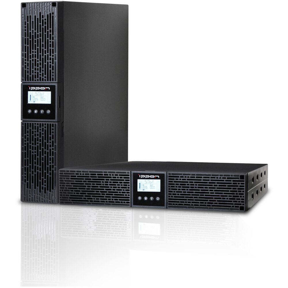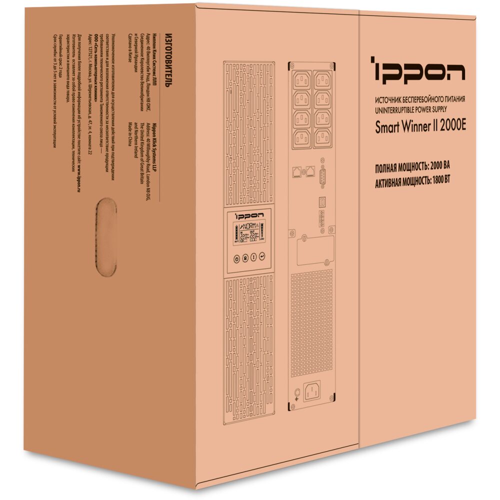 Однофазный ИБП IPPON Smart Winner II 2000E мощностью 2000 ВА 1800 Вт производится по технологии Line- interactive. Она позволяет обеспечивать синусоидную форму выходного напряжения и питать чувствительное к качеству тока оборудование. Внутри установлено 4 свинцово-кислотных аккумулятора напряжением 12 В и ёмкостью 9 Ач каждый. Источник бесперебойного питания оснащён встроенным AVR трансформатором. Он защищает питаемое оборудование от повышения и напряжения в сети. На передней панели IPPON Smart Winner II 2000E установлен жидкокристаллический дисплей и кнопки управления. С их помощью можно проводить мониторинг состояния ИБП и батарей, настраивать рабочие параметры. К источнику бесперебойного питания можно подключить дополнительно до 4 батарейных модулей для увеличения времени автономной работы. Также доступна горячая замена аккумуляторов.