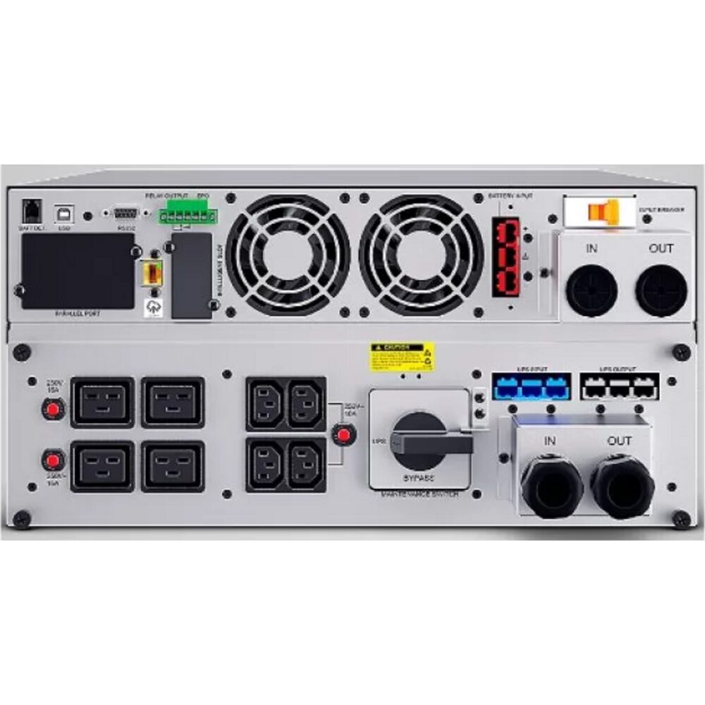 Однофазный Online ИБП CyberPower OLS3000ERT2U мощностью 3000 ВА 2700 Вт (Pf=0.9) производится в универсальном исполнении (RackTower). Источник бесперебойного питания можно установить вертикально на пол или горизонтально в 19`` шкаф или стойку (комплект рельс докупается отдельно). Внутри CyberPower OLS3000ERT2U расположено зарядное устройство и 6 свинцово-кислотных аккумуляторов напряжением 12В и ёмкостью 9 Ач. Для увеличения времени автономной работы к источнику бесперебойного питания можно подключить до 3х внешних батарейных блоков. Выводы у CyberPower OLS3000ERT2U выполнены в виде IEC. ИБП выдаёт на выходе чистую синусоиду благодаря технологии двойного преобразования, что позволяет питать от него даже самое требовательное к качеству электропитания оборудование. Для удобного управления и настройки на передней панели CyberPower OLS3000ERT2U предусмотрены цветной ЖК-дисплей и светодиодные индикаторы. При помощи подключаемых опций можно дистанционно отслеживать состояние ИБП и задавать параметры его работы.