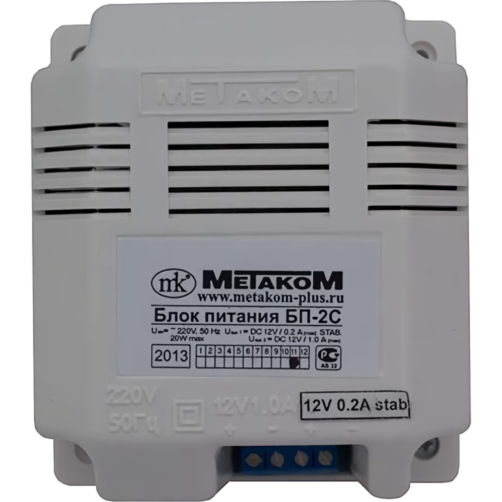 Блок питания предназначен для питания постоянным током домофонных систем Метаком. Питание блока осуществляется от сети переменного тока напряжением 220В частотой 50Гц. Блок может эксплуатироваться в интервале температур от -10 до +40С при относительной влажности воздуха не более 95%. Блок питания имеет защиту от перегрузки как по входу, так и по каждому из выходов. Первый канал (стабилизированное напряжение): 120,5В, 0,3А. Второй канал (нестабилизированное напряжение): 131,5В, 0,8А