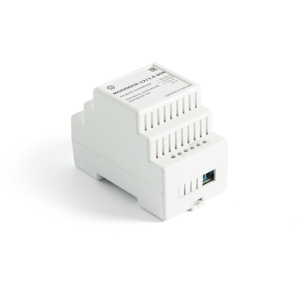 12 В, 1,5 А. Напряжение питающей сети — 90...264 В переменного тока, 110...370 В постоянного тока, пульсации выходного напряжения — не более 50 мВ, корпус на DIN-рейку, защита выхода от КЗ и перегрузки.