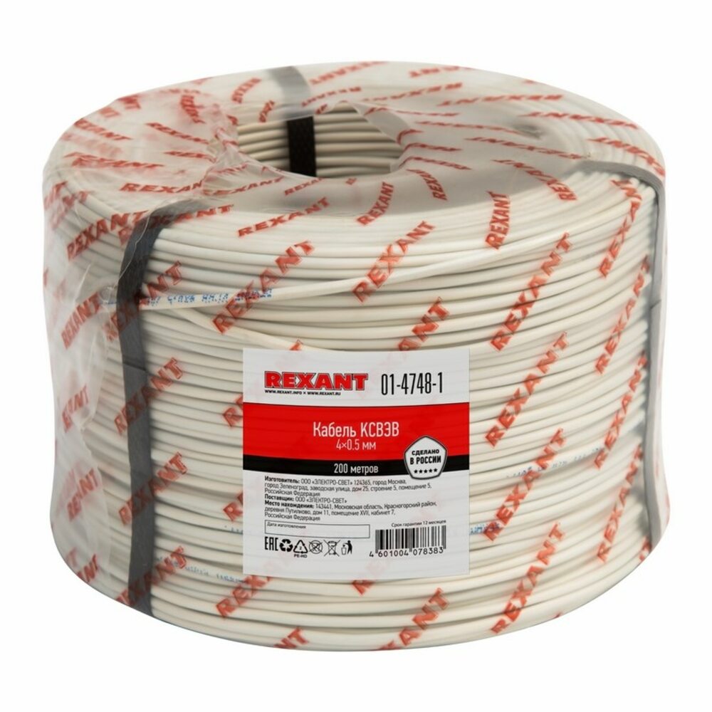 Теги: Кабель сигнальный REXANT КCВЭB 4х0, 5 мм, бухта 200м (01-4748-1), Количество жил, шт.:4, Сечение, кв. мм:0.5