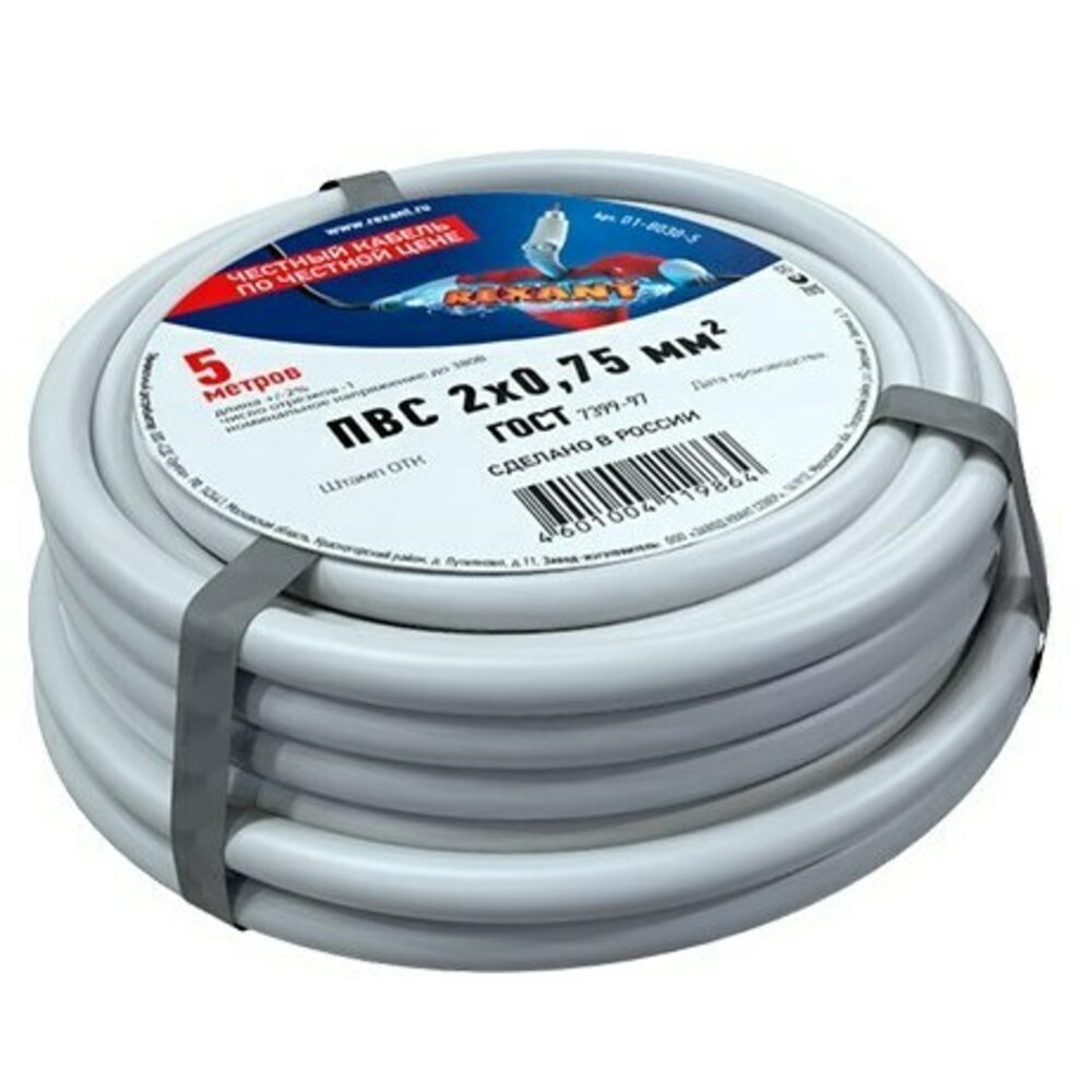 Провод REXANT ПВС 2x0,75 кв. мм, длина 5 метров, ГОСТ 7399-97 01-8030-5