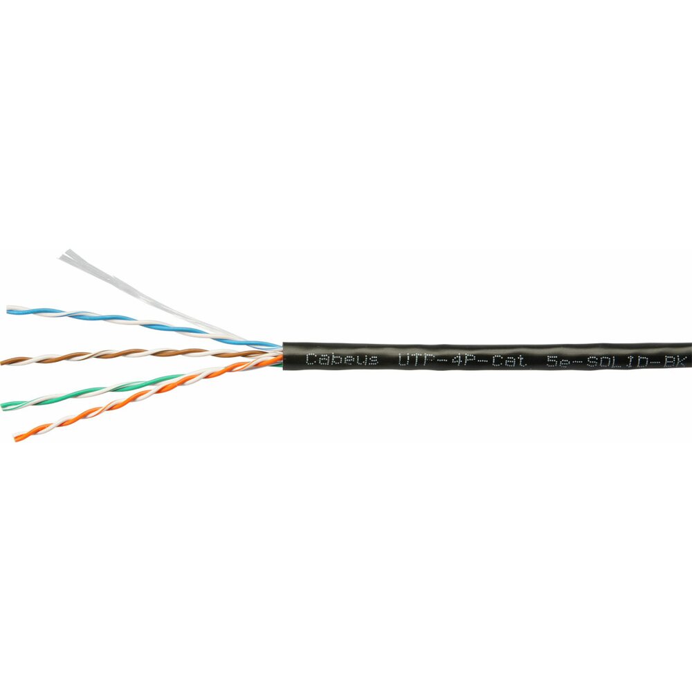 Cabeus UTP-4P-Cat.5e-SOLID-BK Кабель витая пара UTP (U/UTP), категория 5e, 4 пары (24 AWG), одножильный, PVC нг(А)-LS, черный (305 м)