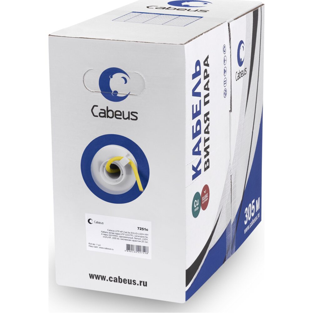 Cabeus UTP-4P-Cat.5e-SOLID-YL Кабель витая пара UTP (U/UTP), категория 5e, 4 пары (24 AWG), одножильный, PVC нг(А)-LS, желтый (305 м)