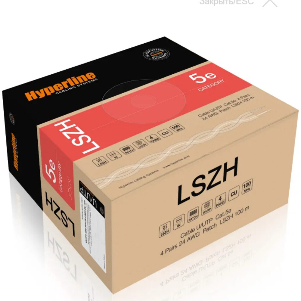 Hyperline UUTP4-C5E-P24-IN-LSZH-OR-100 (100 м), кабель витая пара, неэкранированный U/UTP, категория 5e, 4 пары 24 AWG, 4х2х0,60 мм, многопроволочные жилы, LSZH, нг(А)-HF, внутренний -40°C – +75°C, оранжевый