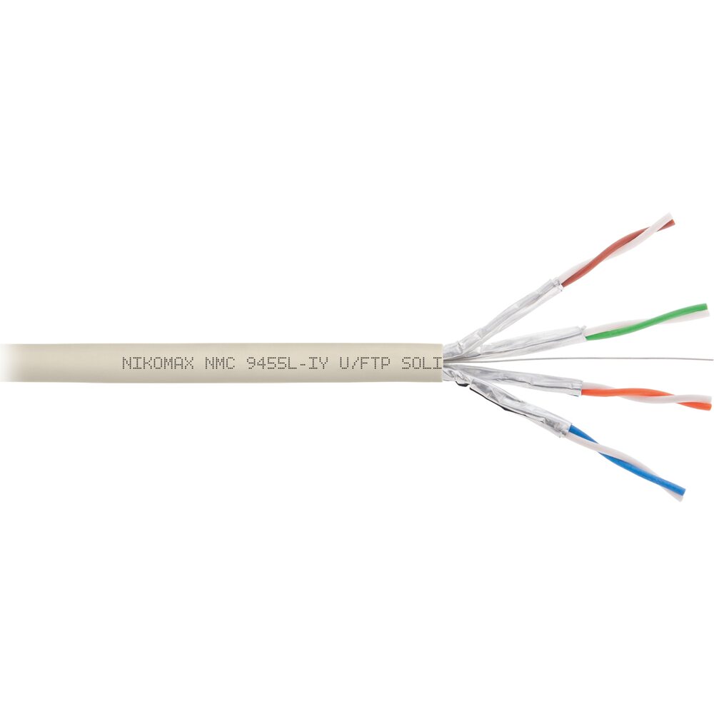 Кабели 9-й серии по праву являются флагманами модельного ряда и подходят для СКС любой категории сложности. Производятся из лучших материалов, доступных на рынке. Высочайшее качество изготовления гарантирует превосходство характеристик над самыми жесткими мировыми стандартами. Линейка кабелей 9-й серии включает в себя широкий ассортимент экранированных и неэкранированных четырехпарных кабелей категорий 5e, 6 и 6A и 8 для внутренней прокладки. Все кабели 9-й серии поставляются на барабанах, обеспечивающих сохранность при транспортировке, постоянство характеристик и удобство работы при монтаже. Надежность кабелей NIKOMAX 9-й серии подкрепляется 15-летней компонентной гарантией. А сертифицированная СКС NIKOMAX получает системную поддержку на 25 лет Кабель NMC 9455L-IY выполнен в экранированном исполнении U/FTP, соответствует категории 6А и предназначен для внутренней прокладки. Внешняя оболочка выполнена из не распространяющие горение при групповой прокладке, с пониженным дымо- и газовыделением и с низкой токсичностью продуктов горения, полимерного материала в исполнении нг(A)-LSLTx.
